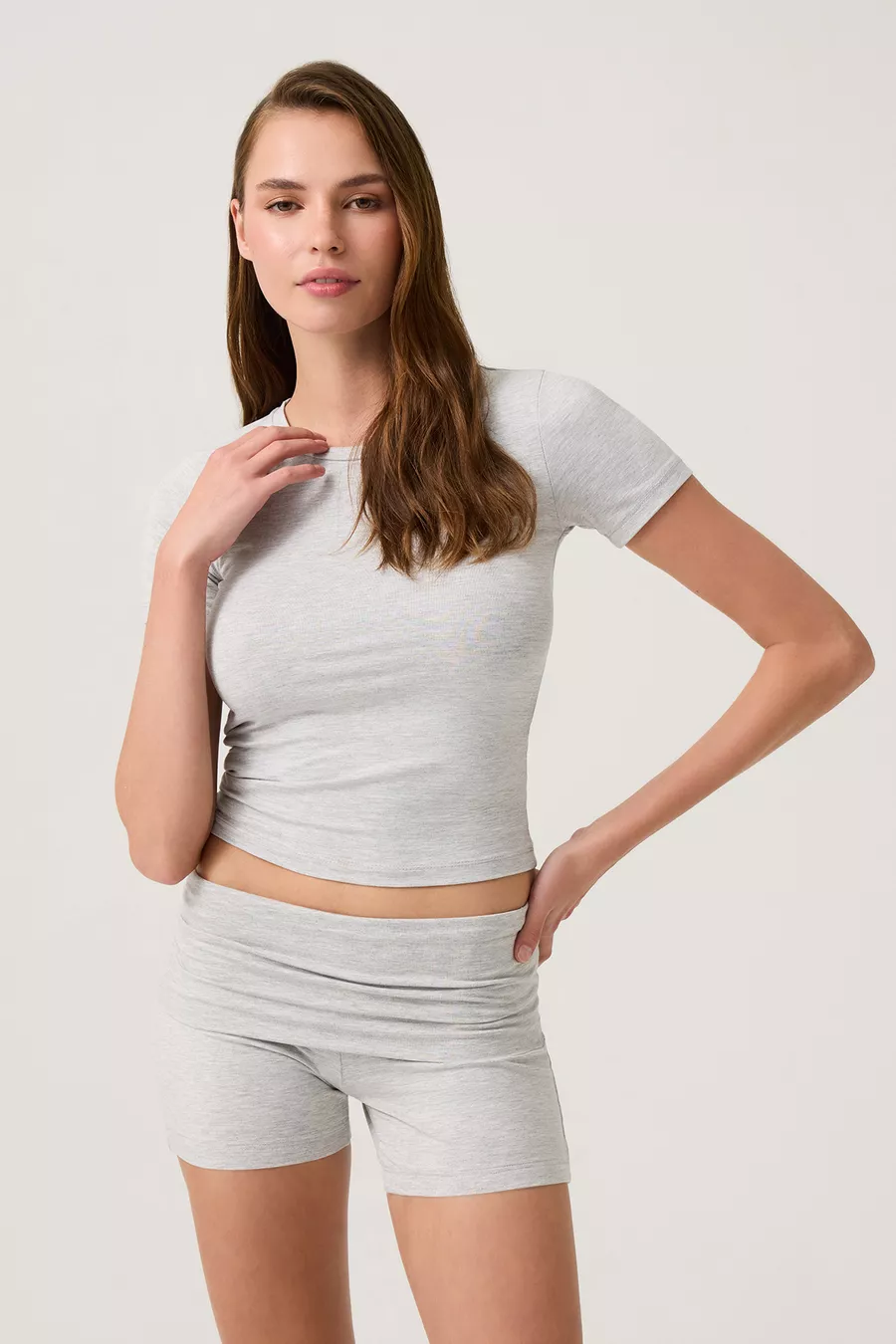 Gray Foldable Waist Detail Shorts Lounge Shorts