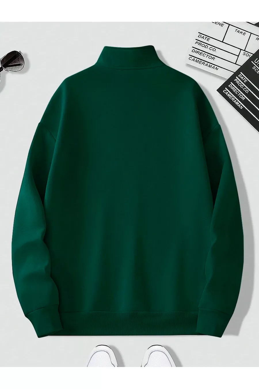 Green High Collar Zippered Oversized Unisex Sweatshirt