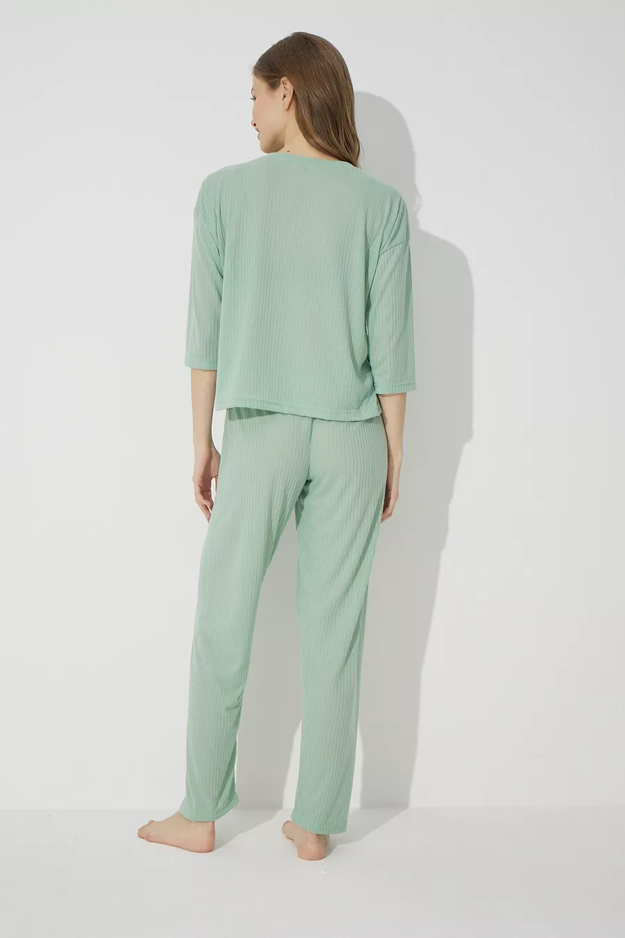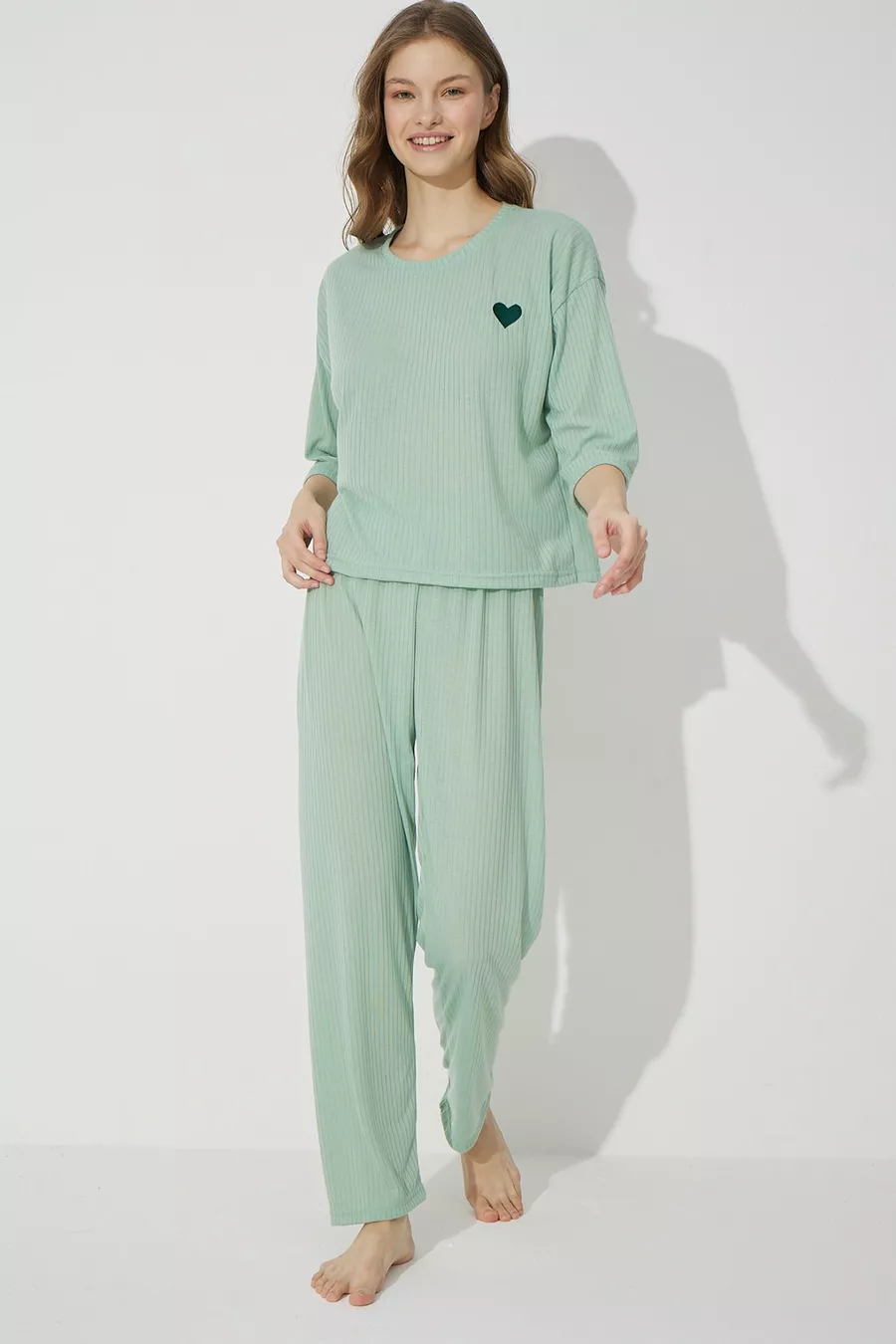 Green Soft Touch Thin Knitted Embroidered Pajama Set