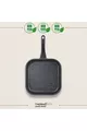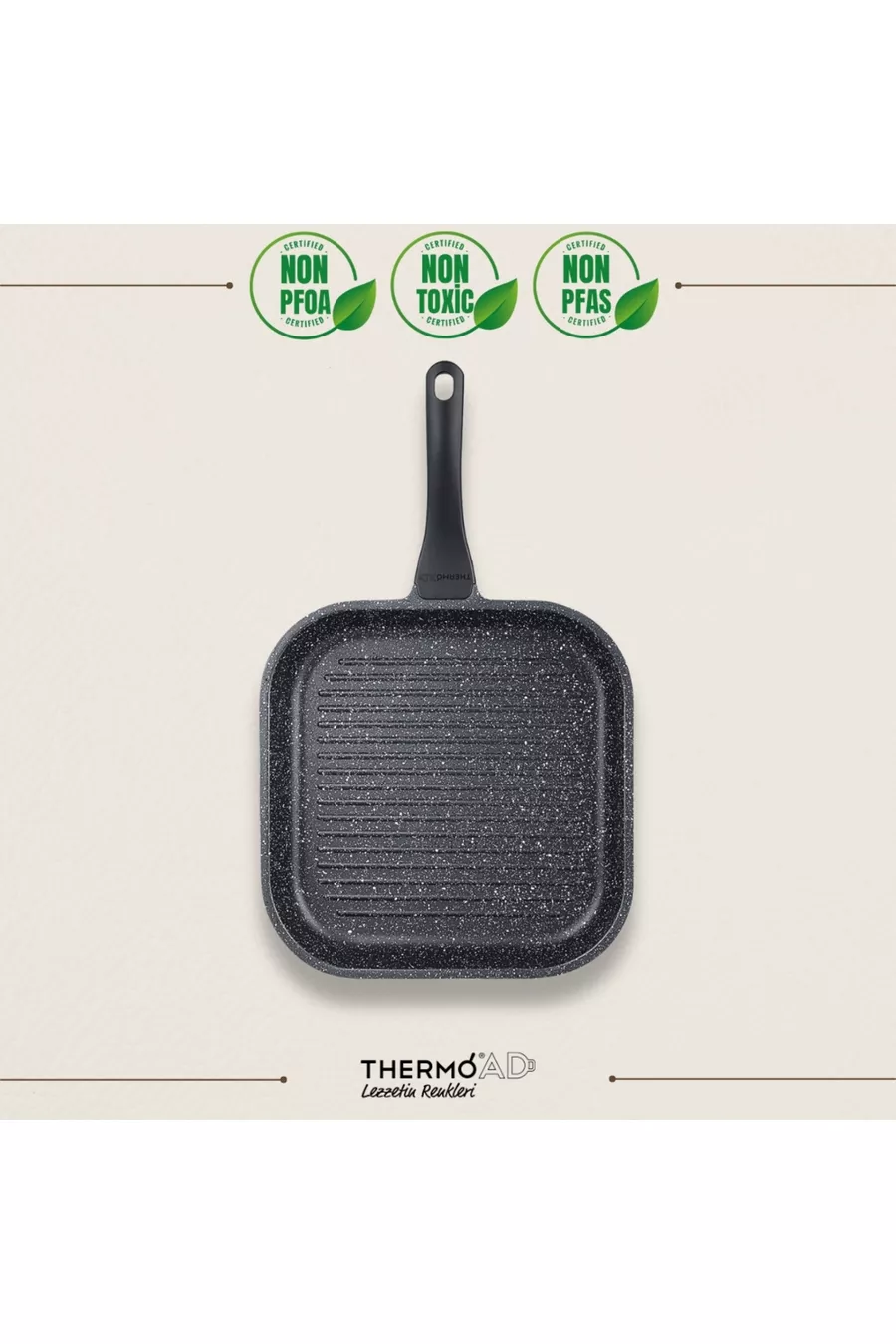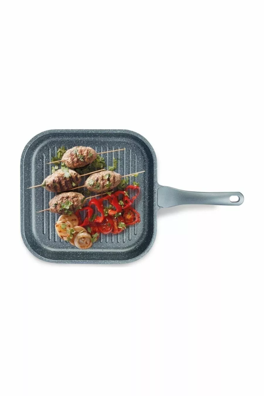 Size/Dimensions: 28 cm Number of Pieces: 1 Piece Feature: Non-stick Base Product Type: Grill Pan Outer Material: Granite Inner Material: Granite Color: Gray Origin: TR Care Instructions (Food Contact): Safe for food contact. Food Contact Symbol: Yes Material: Cast Color: Gray