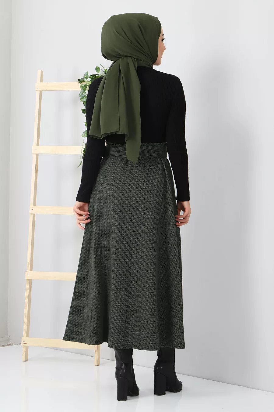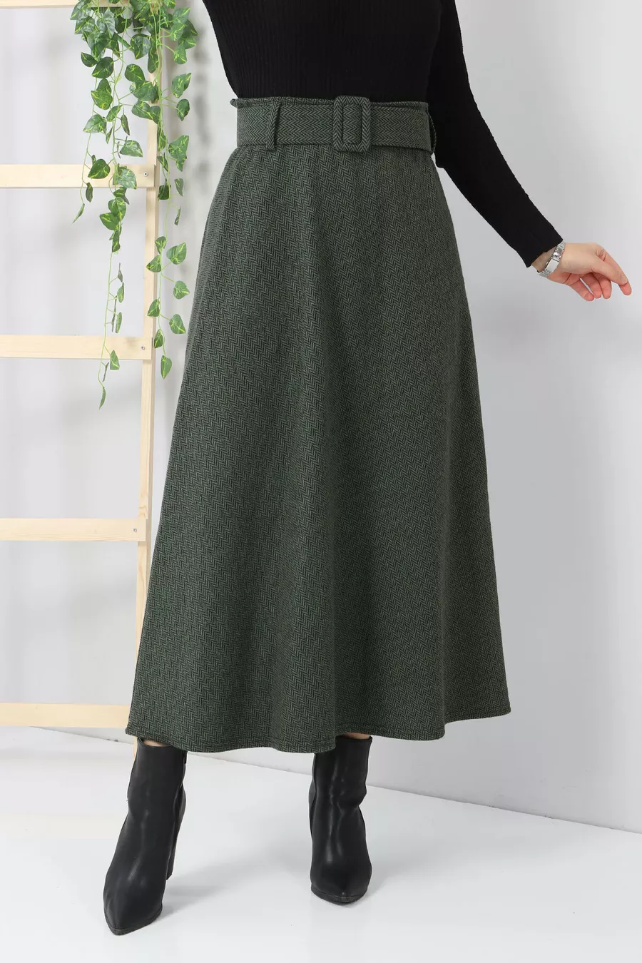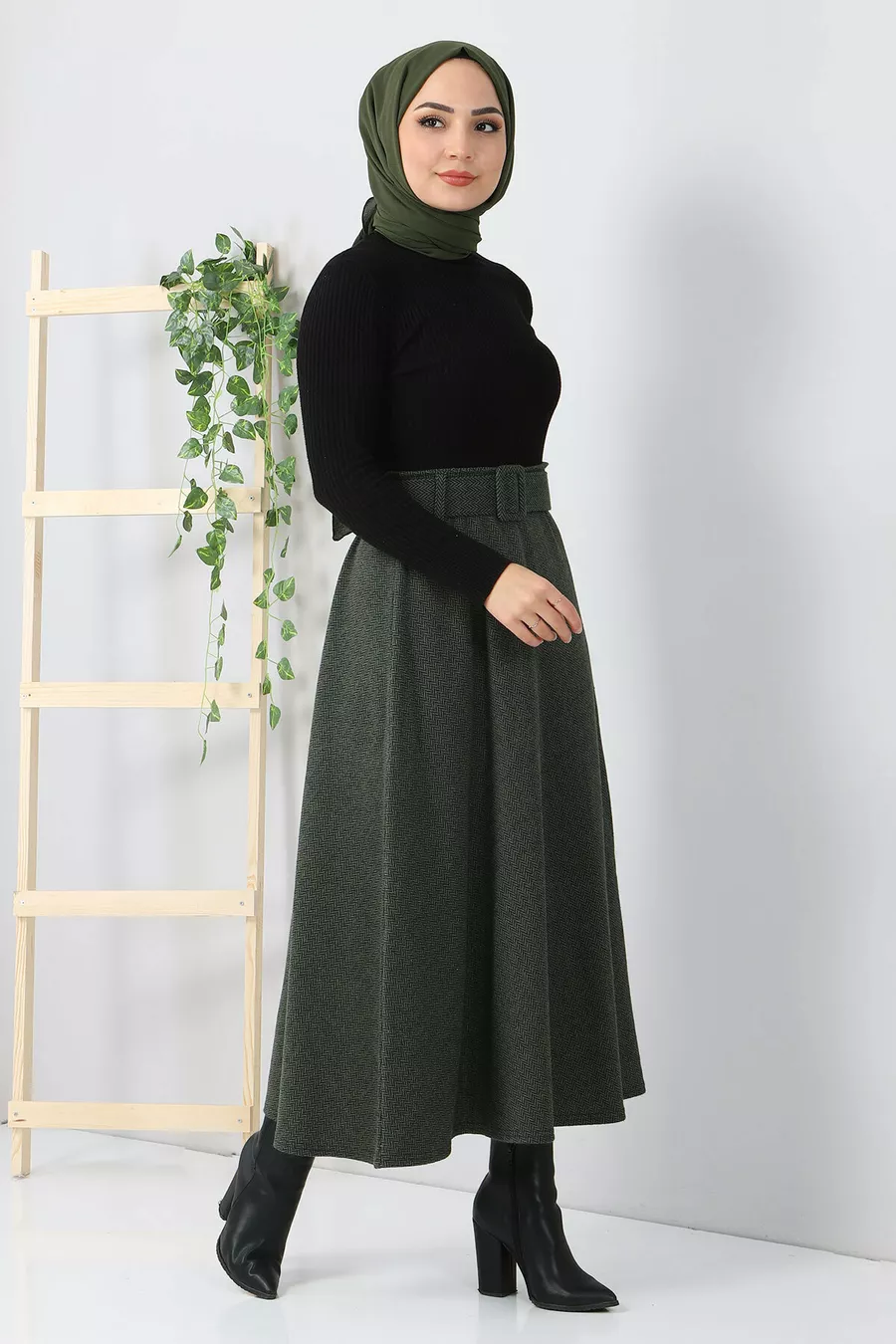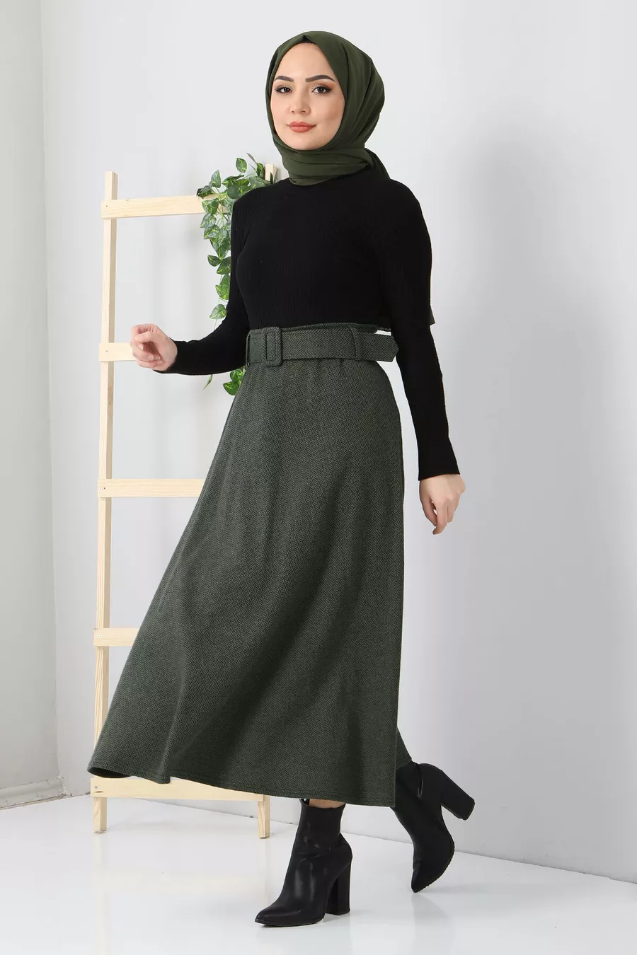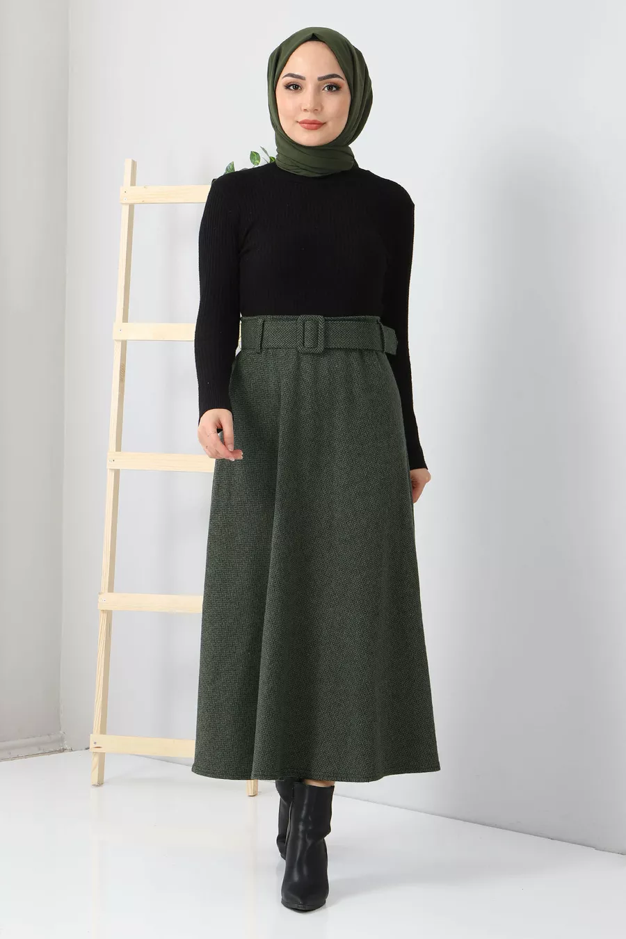 Silhouette: Fish Pattern: Fish Design: Herringbone Fabric Type: Knitted Material: Polyester Blend Color: Khaki Product Detail: With Belt Collection: Modest Wear Waist: Regular Waist Pocket: Without Pockets Additional Feature: Non-See-Through Weave Type: Herringbone Length: Maxi Belt/Strap Status: With Belt Closure Type: Zipper Sustainability Detail: No Lining Status: Unlined Persona: Smart/Office Occasion: Casual/Daily Material Composition: 40% Cotton, 50% Polyester, 10% Acrylic Washing Instructions: Type 1 Origin: TR Box Status: No Box Package Contents: Single Item