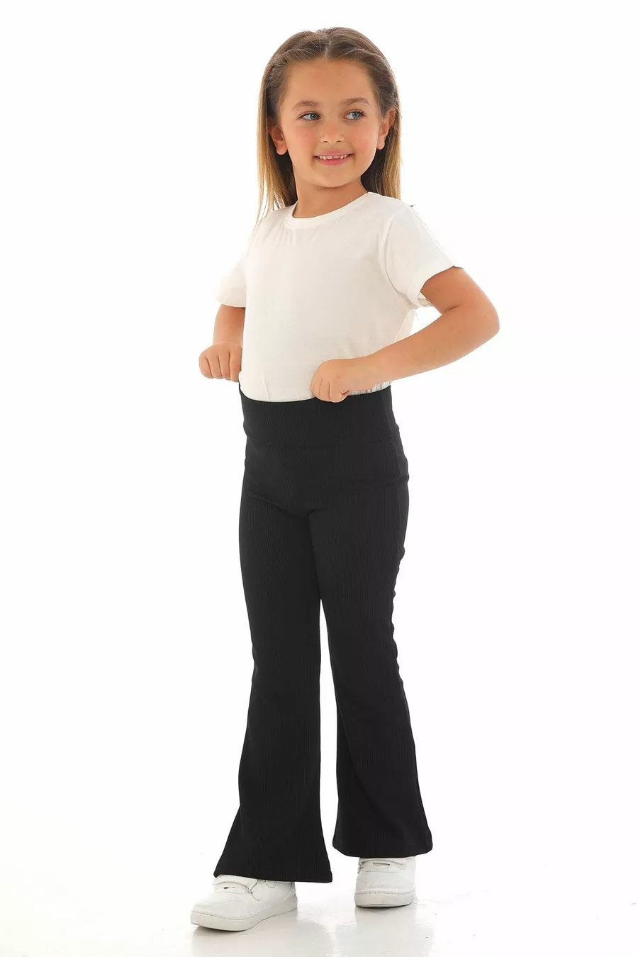 High Waist Spanish Leg Ribbed Black Color Girls' Leggings