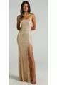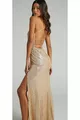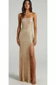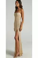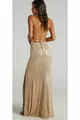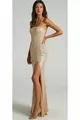 Hilaltrend Zara Pulpayet Embroidered Gold Evening Dress