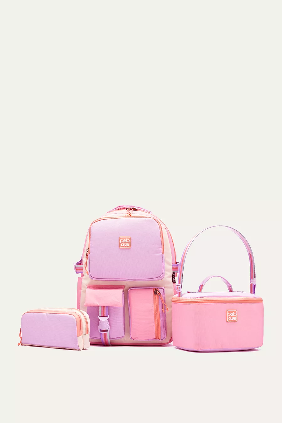 Hkn 3-Piece Set Elementary School Backpack Multi-Compartment Orthopedic Backpack Lilac