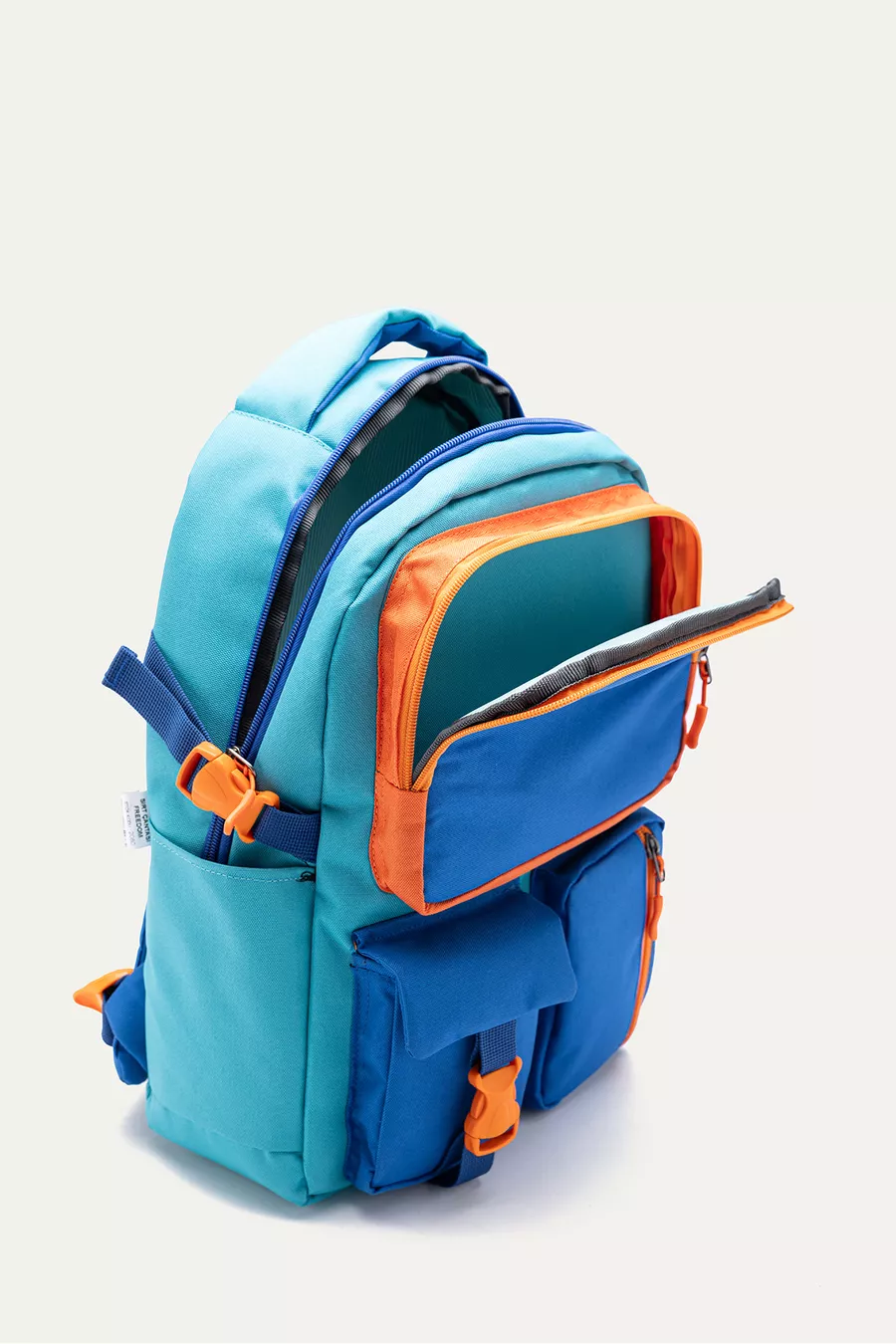 Hkn 3-Piece Set Elementary School Backpack Multi-Compartment Orthopedic Backpack Blue