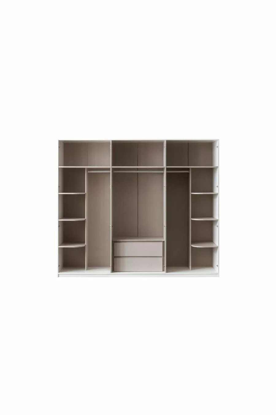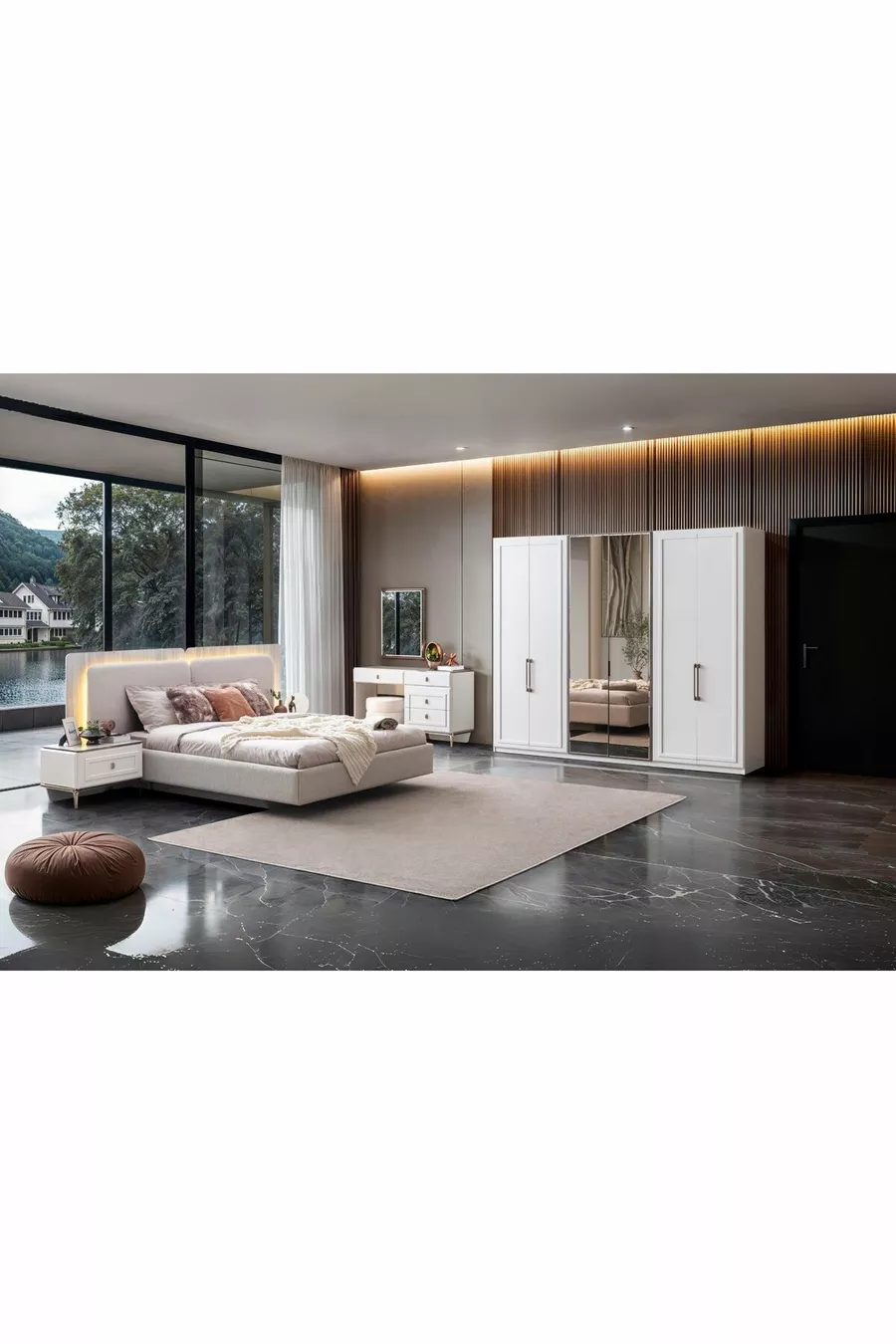 Set Contents: Bed with Base + 2 Nightstands + Dresser + Wardrobe