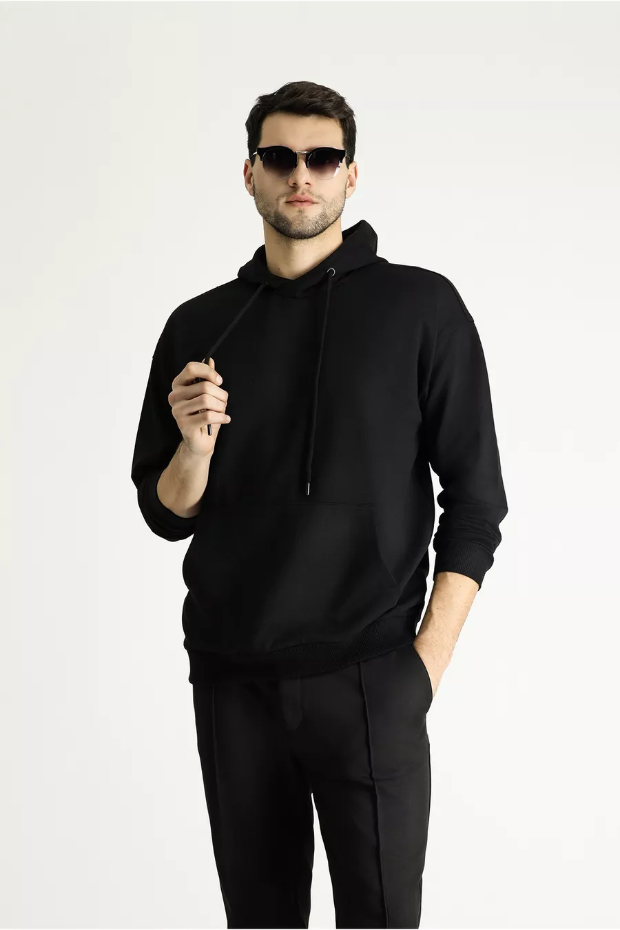 Box Condition: No box Sleeve Type: Long Sleeve Pattern: Plain Fit: Oversize Neck Type: Hooded Fabric Type: Knit Color: Black Material: Cotton Polyester Pocket: Kangaroo Pocket Sleeve Length: Long Collection: Sportswear Package Contents: Single Occasion: Casual Length: Standard Silhouette: Regular Weave Type: 2-Ply Print/Embroidery Technique: No Print Sustainability Detail: No Material Composition: 55% Polyester, 45% Cotton Washing Instructions: T09 Season: Summer Origin: TR Number of Pieces: 1