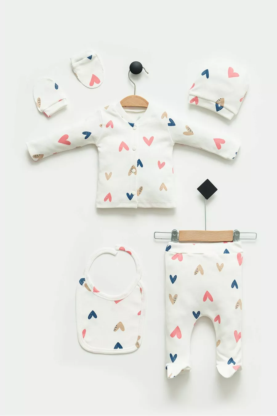 Hospital Discharge Set, 5-Piece Cotton Set, Newborn Clothes, Colorful Heart, % Cotton - Gift Wrapped