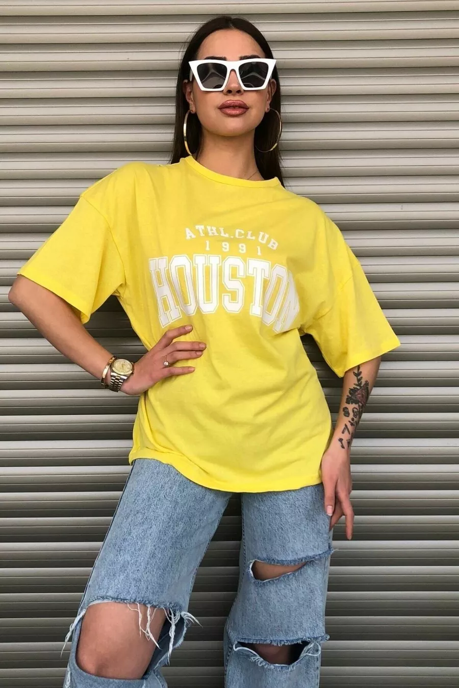 Pattern: Printed Fit: Oversize Neck Type: Crew Neck Material: Fabric Fabric Type: Knit Sleeve Type: Short Sleeve Color: Yellow Package Content: Single Technique: Digital Print Pocket: Without Pocket Product Detail: Binded Sleeve Length: Short Collection: Unisex Length: Regular Occasion: Casual Additional Feature: Washed Print/Embroidery Technique: Digital Print Sustainability Detail: Yes Weave Type: Suprem Silhouette: Basic Persona: Cool & Comfort Material Composition: 50% Polyester, 50% Cotton Washing Instructions: • Machine washable at 30°C • Do not use bleach • Do not tumble dry • Iron inside out at low temperature Season: Summer Origin: TR Box Condition: No box