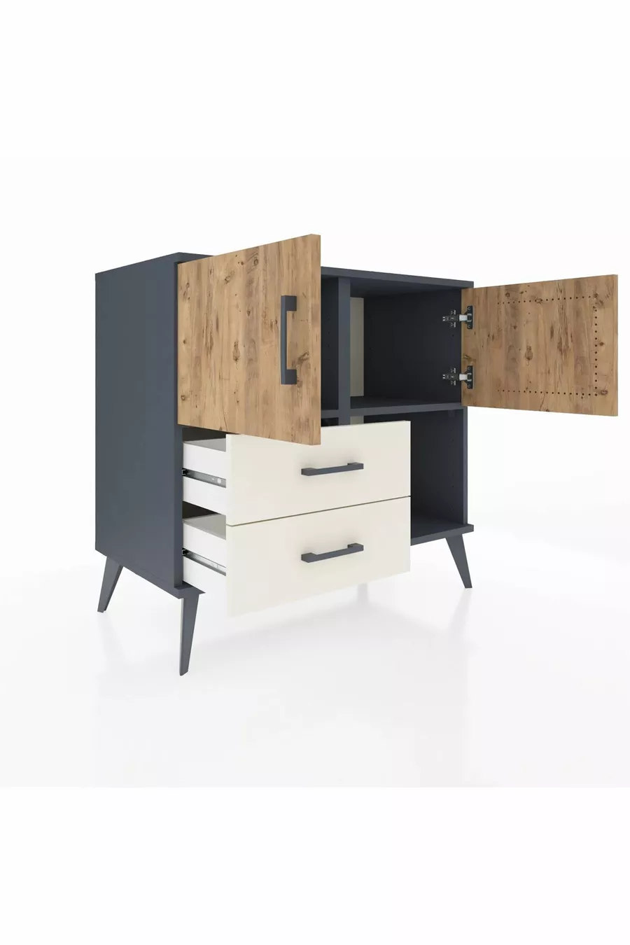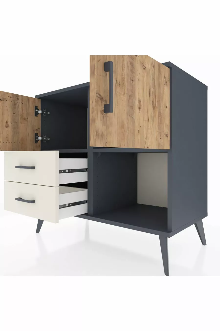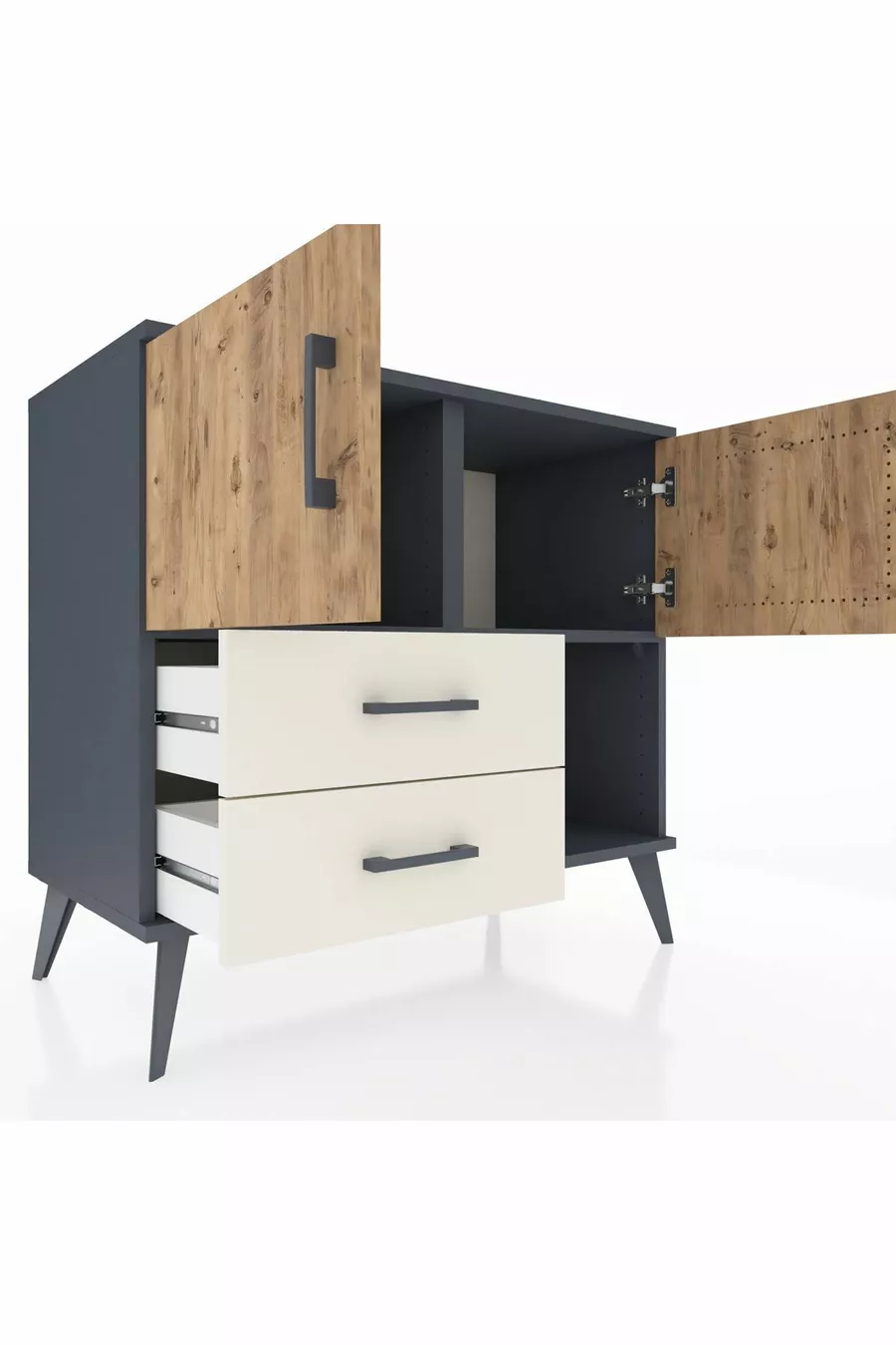 Hyperion Dresser with 2 Shelves, 2 Drawers, 2 Doors Anthracite-Pine/Travertine
