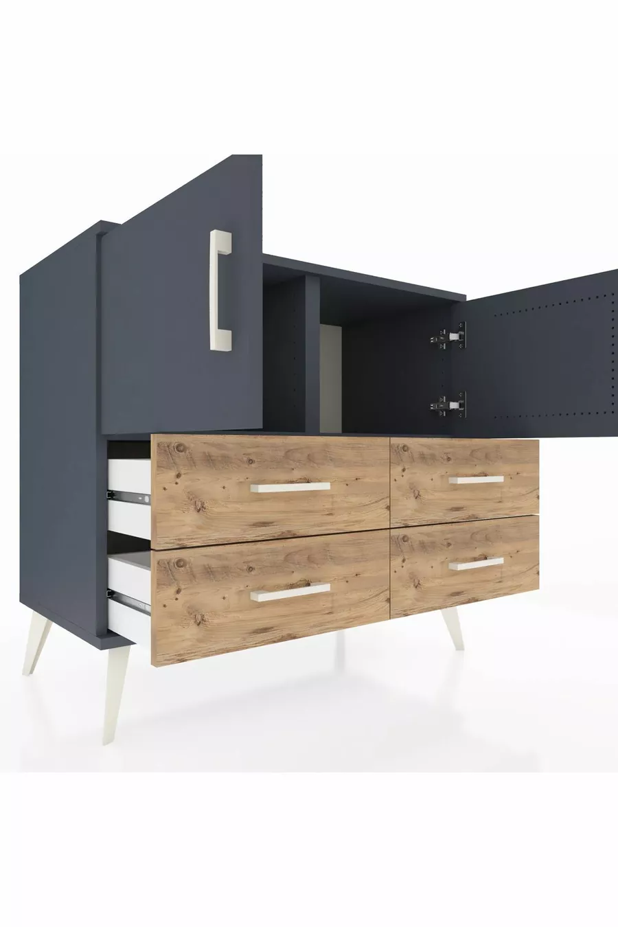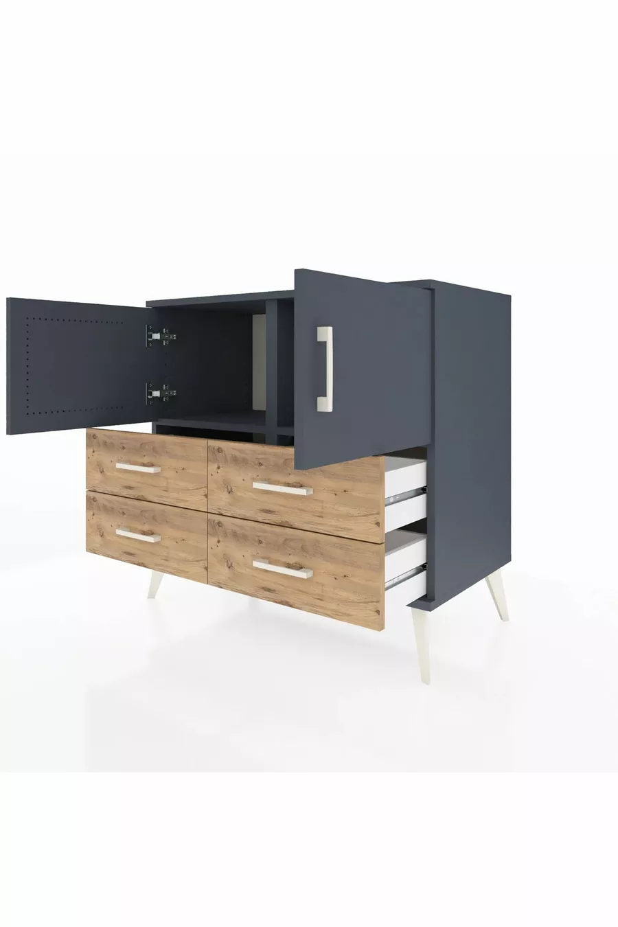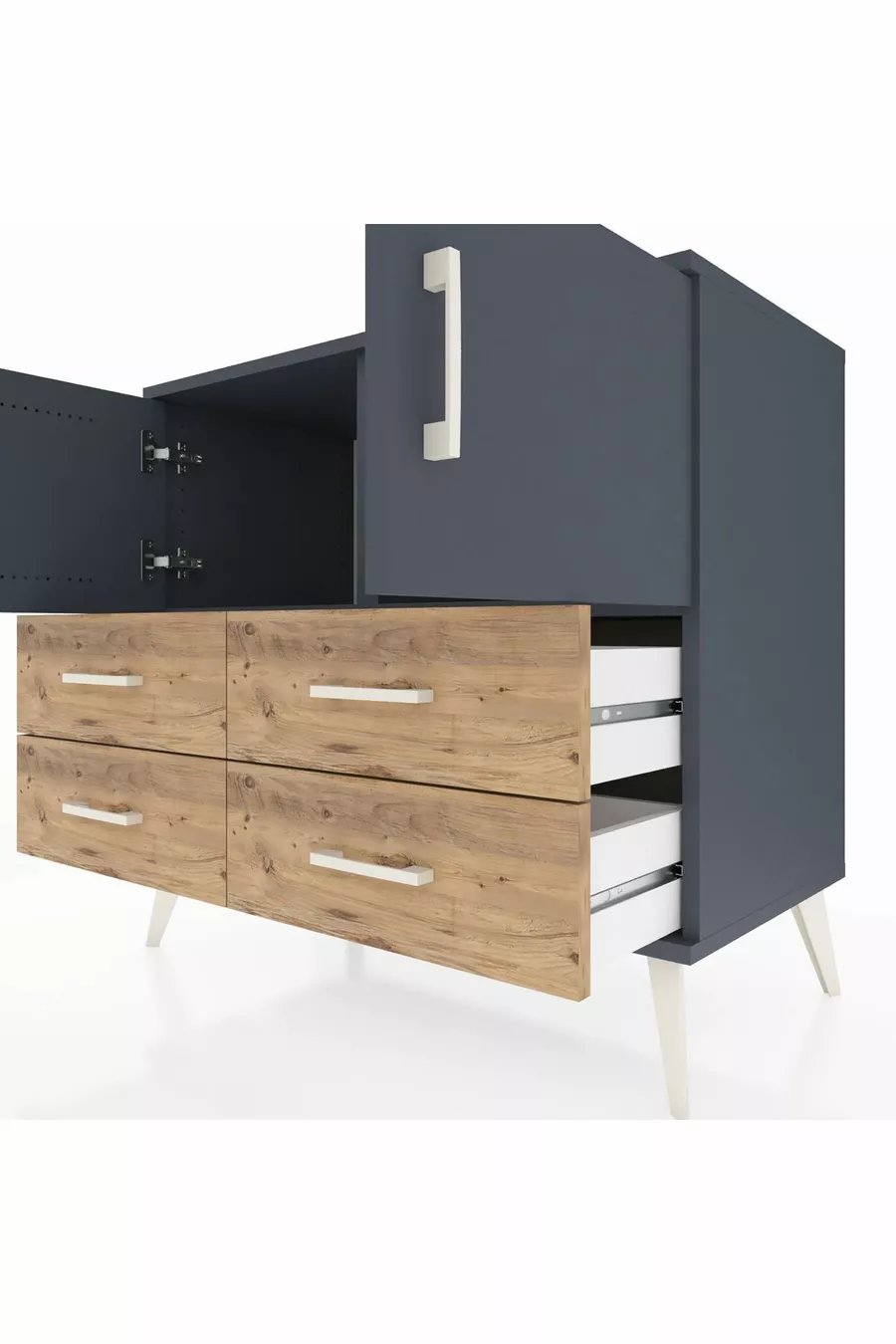 Hyperion Dresser 2-Shelf 4-Drawer 2-Door Anthracite-Anthracite/Pine