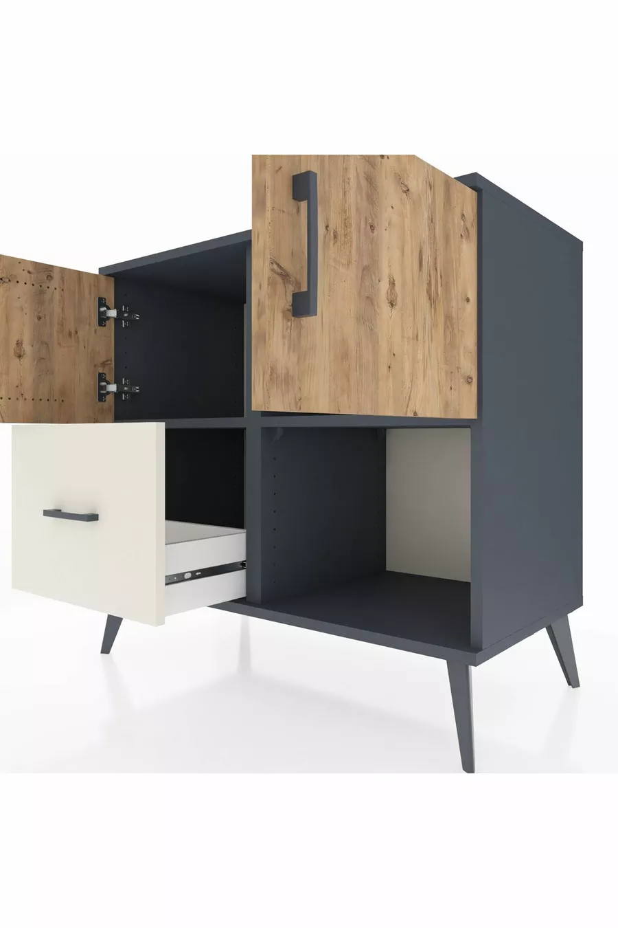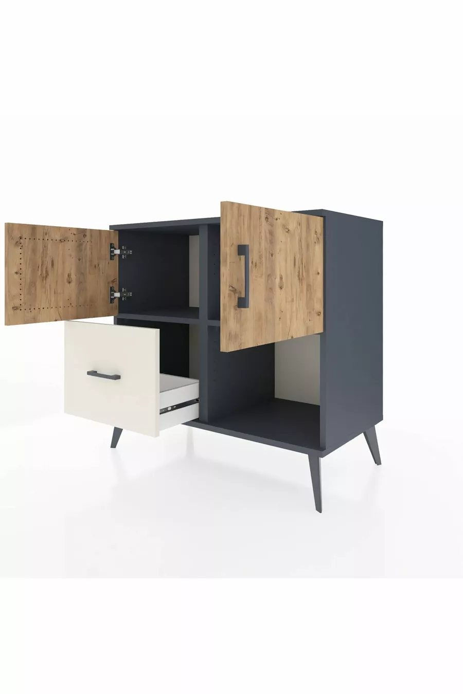 Hyperion Dresser with 2 Shelves, 1 Drawer, 2 Doors, Anthracite-Pine/Stone