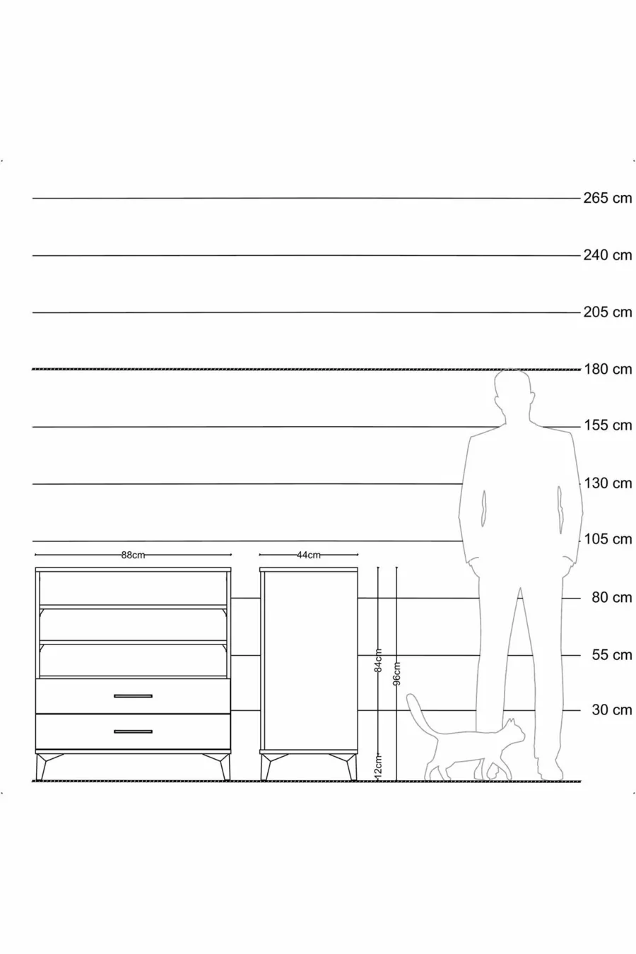Color: Multicolor Material: Particleboard Height: 96 cm Width: 44 cm Depth: 44 cm Number of Drawers: 2 Product Feature: With Drawers Style: Modern Theme / Style: Modern Origin: TR