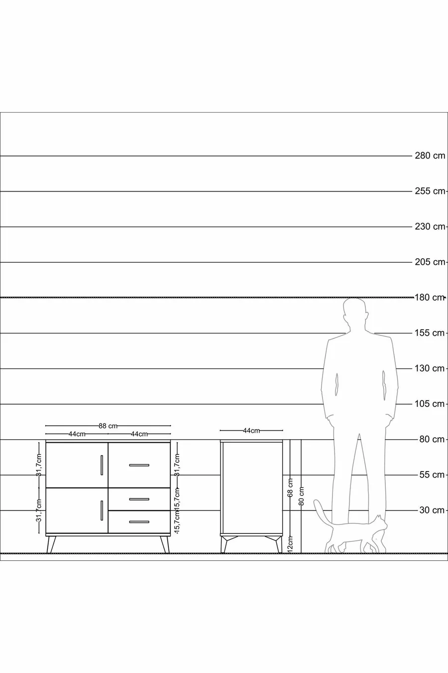 Color: White Material: Particleboard Height: 80 cm Width: 88 cm Depth: 44 cm Number of Drawers: 3 Product Feature: With Lid Style: Modern Theme / Style: Modern Origin: TR