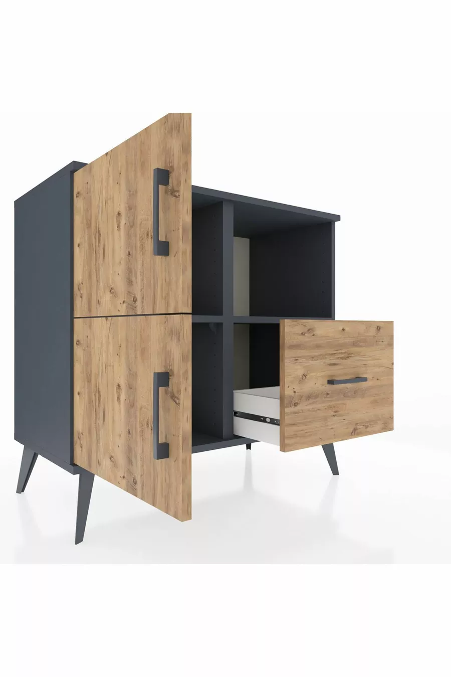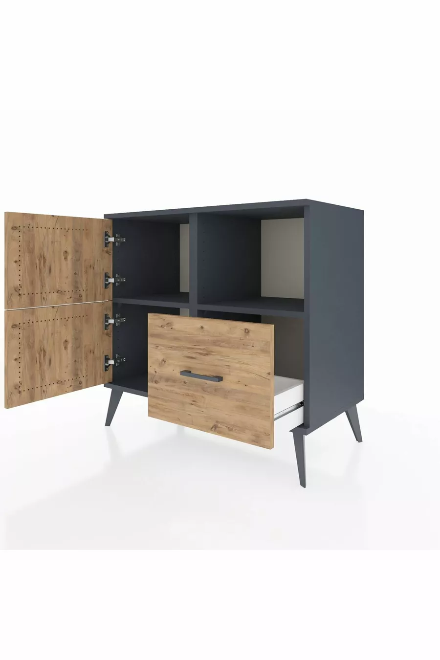 Hyperion Dresser 2-Shelf Single Drawer 2-Door Anthracite-Pine