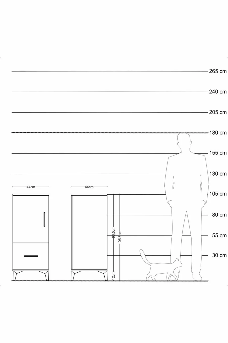 Material: Particleboard Color: Multicolored Number of Drawers: 1 Height: 106 cm Width: 44 cm Depth: 44 cm Style: Modern Theme / Style: Modern Origin: TR