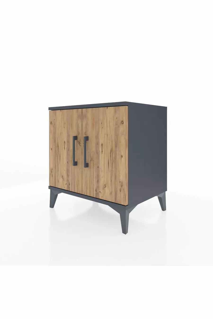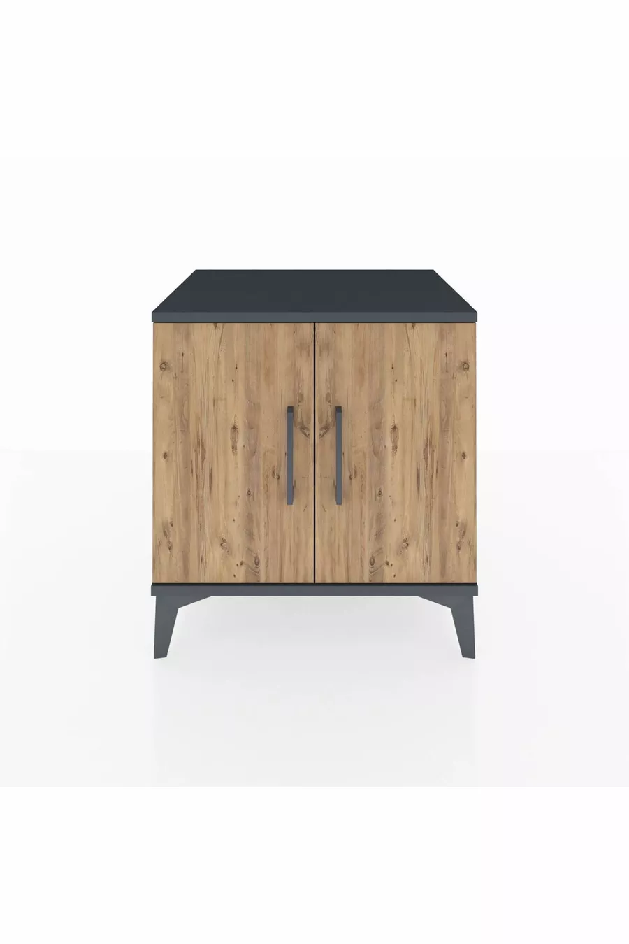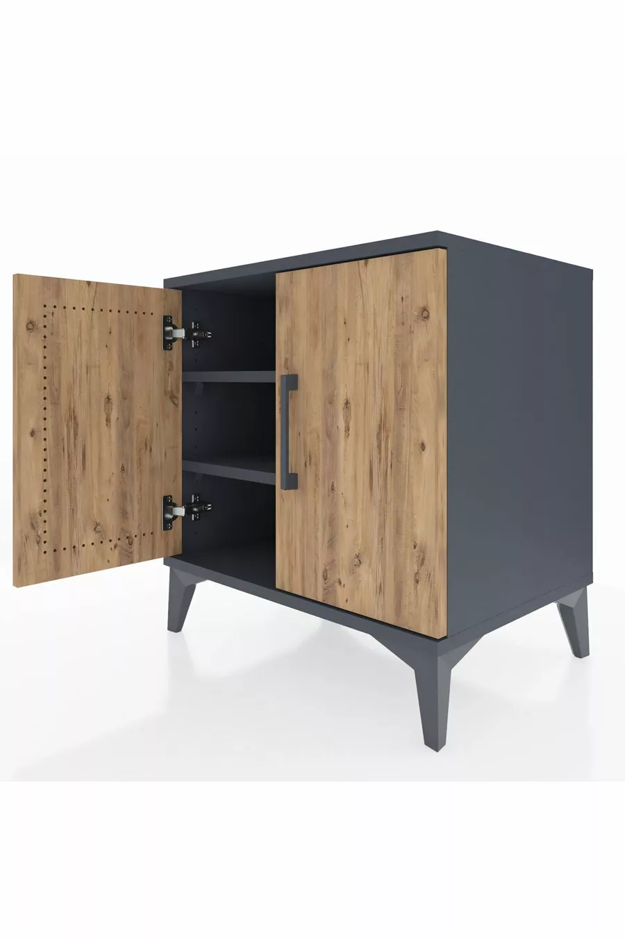 Hyperion Nightstand with 2 Shelves and 2 Doors Anthracite-Pine