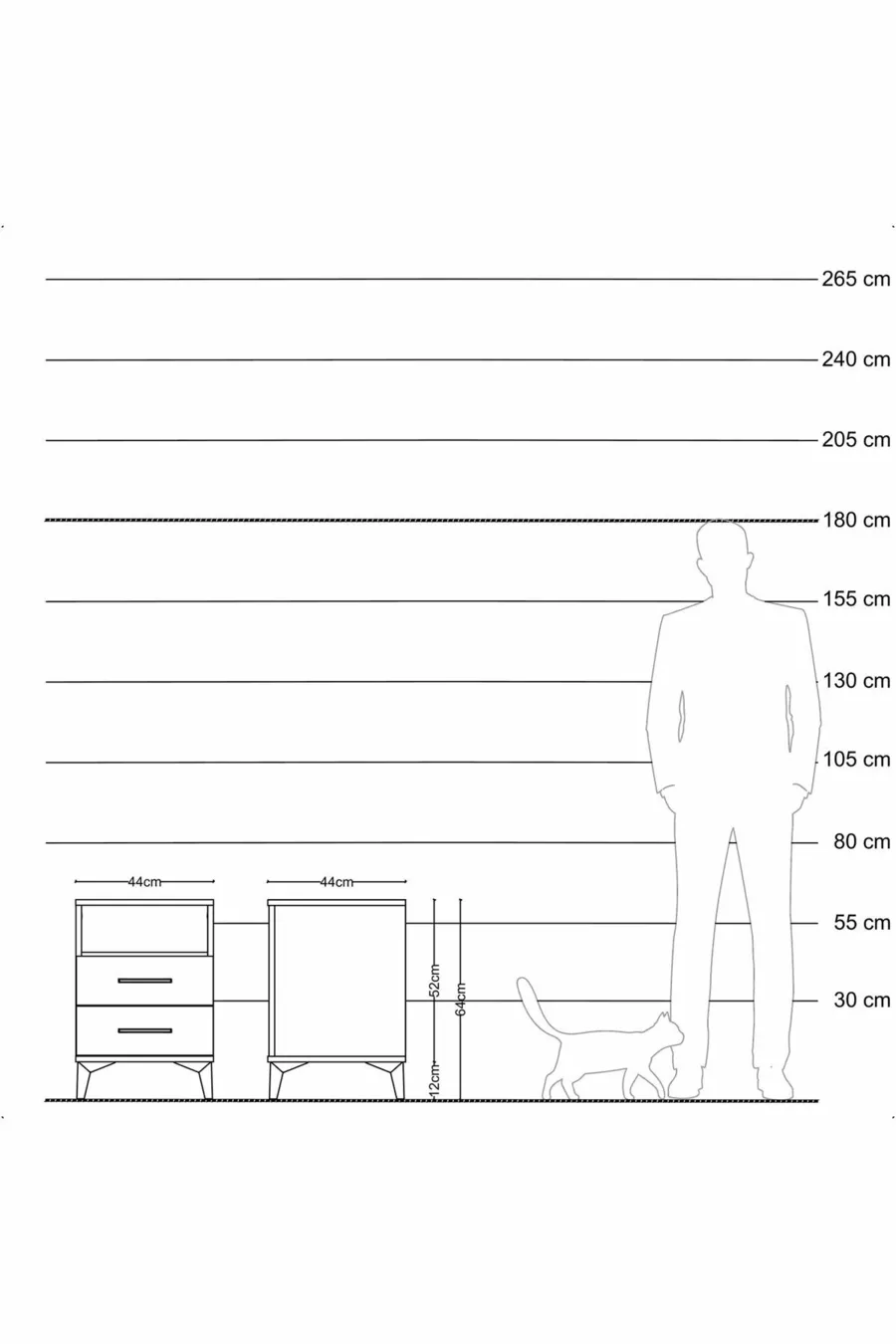 Material: Particleboard Color: Multicolored Number of Drawers: 2 Height: 64 cm Width: 44 cm Depth: 44 cm Style: Modern Theme / Style: Modern Origin: TR