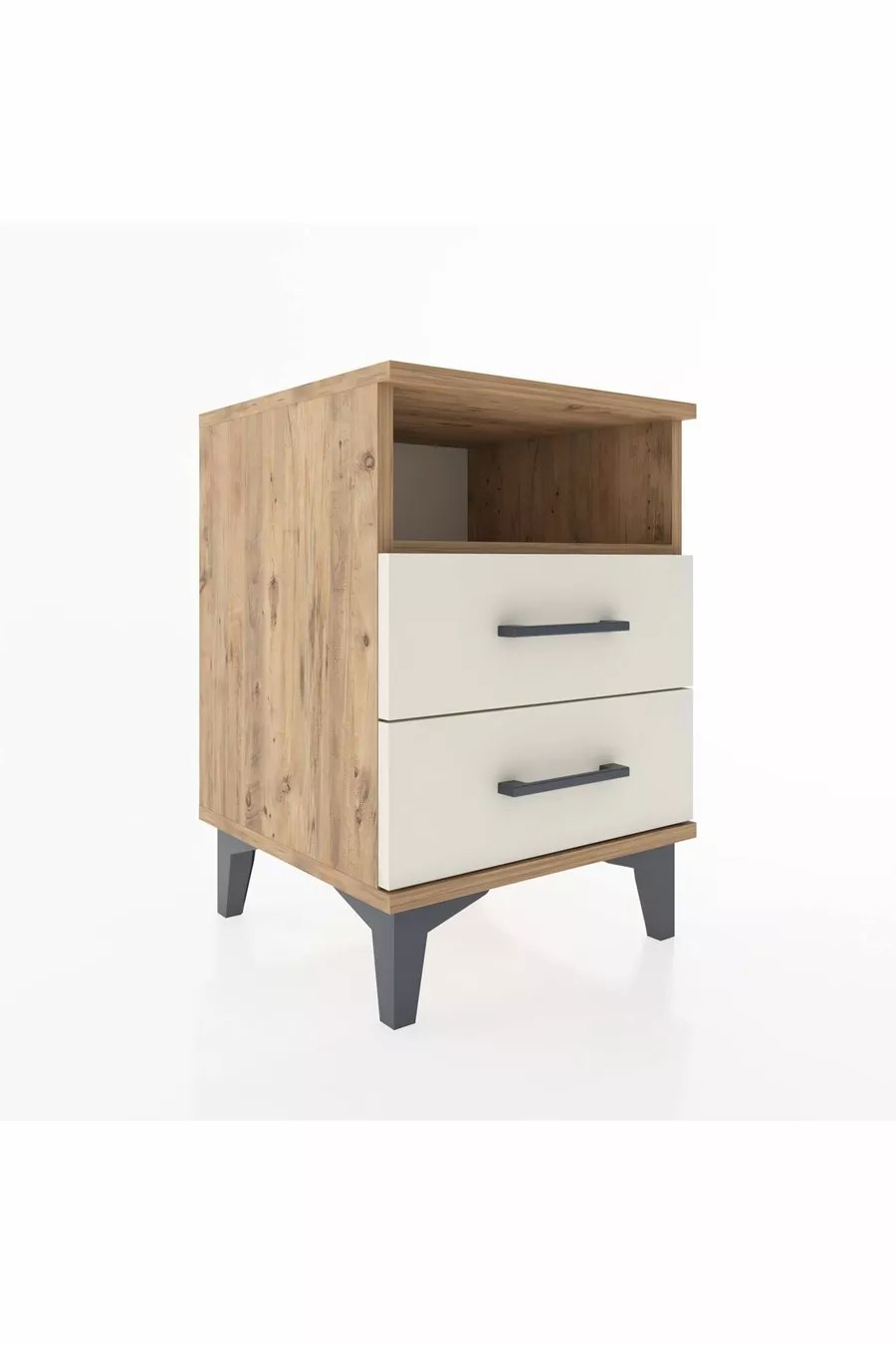 Hyperion Nightstand with One Shelf and 2 Drawers Pine-Ash