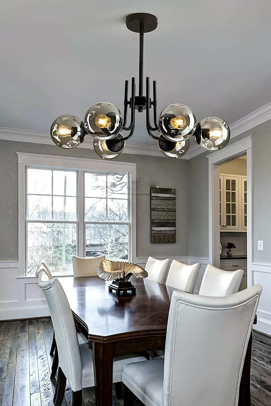 İDİL Modern Black Case Fume Glass Chandelier for Living Room, Set of Six