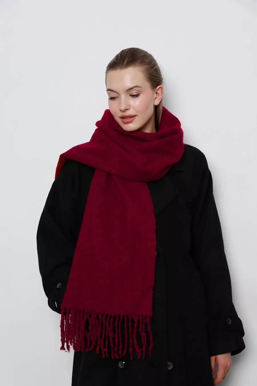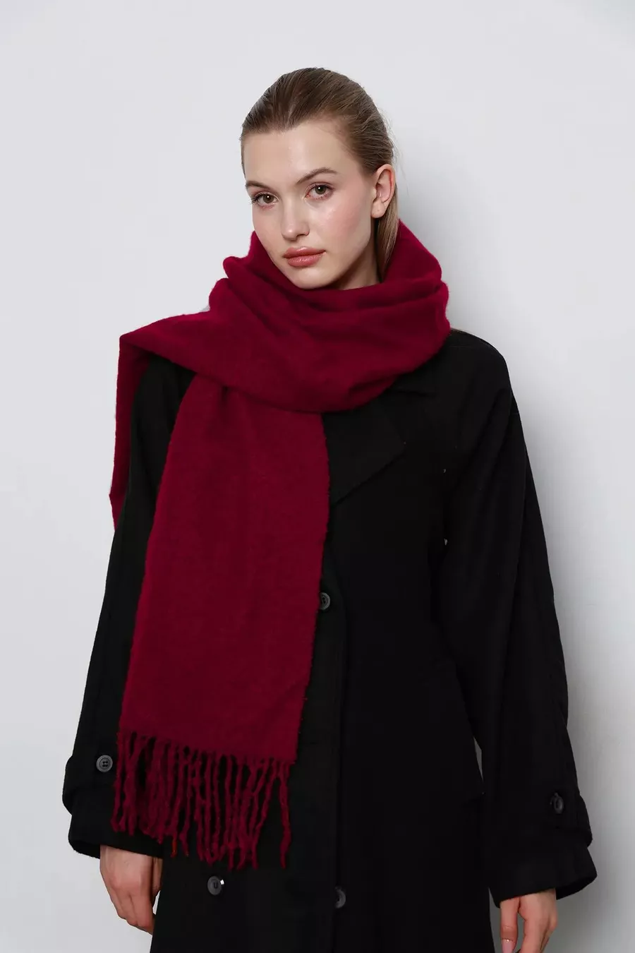 Fabric Type: Knit Pattern: Plain Material: Woolen Age: All Age Groups Color: Burgundy Product Detail: Tassel Material Composition: Knit woolen cotton Washing Instructions: Recommended to wash at 30 degrees Origin: TR Season: Winter