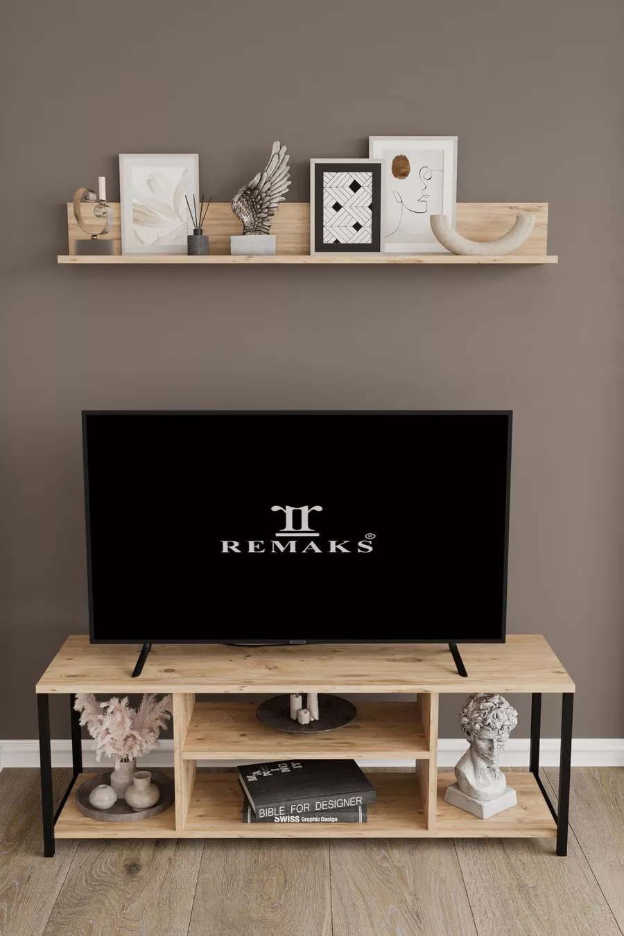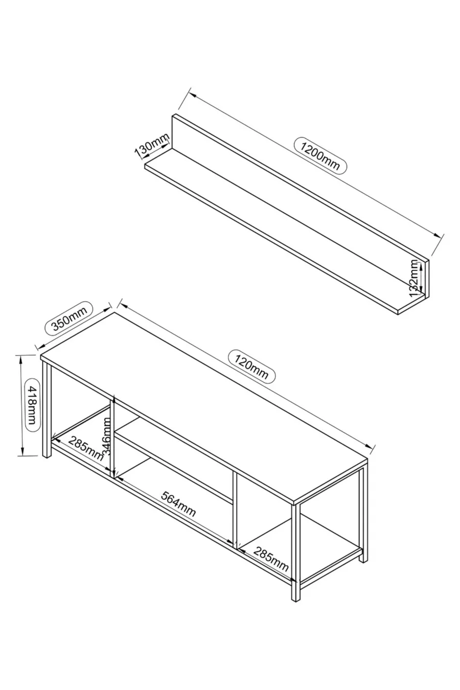Material: Metal Feature: With shelves Color: Brown Height: 42 cm Width: 120 cm Depth: 35 cm Warranty Period: 2 Years Style: Modern Theme / Style: Modern