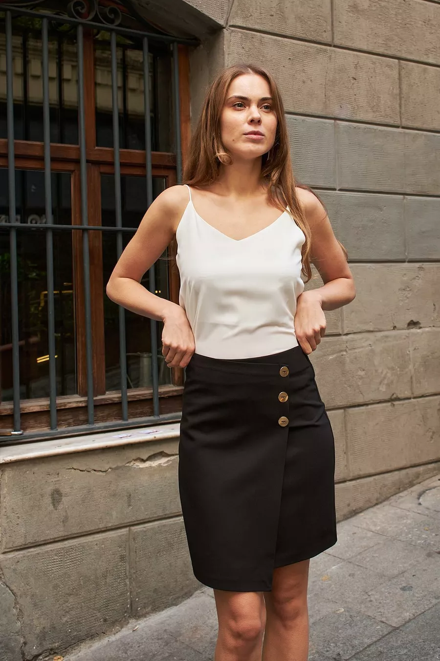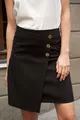 Women's Knee-Length Pencil Skirt with Back Zipper and Button Details, Lightweight Stretch Fabric - Black
