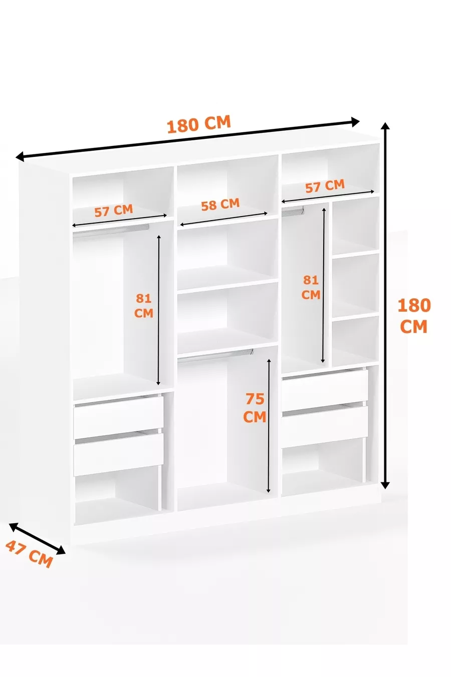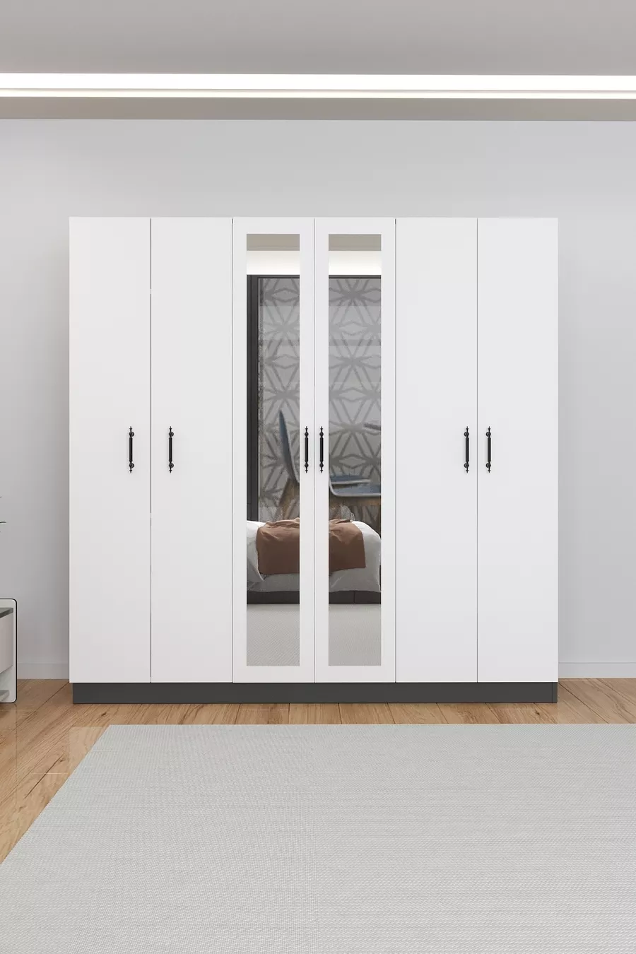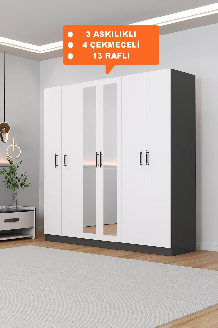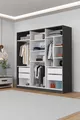 Kale Aynalı Antrasit/Beyaz, 6 Kapaklı Gardırop, Raflı, 3 Askılıklı Cm Dolap