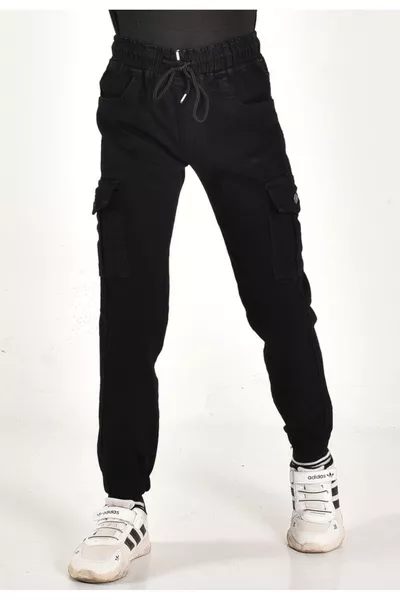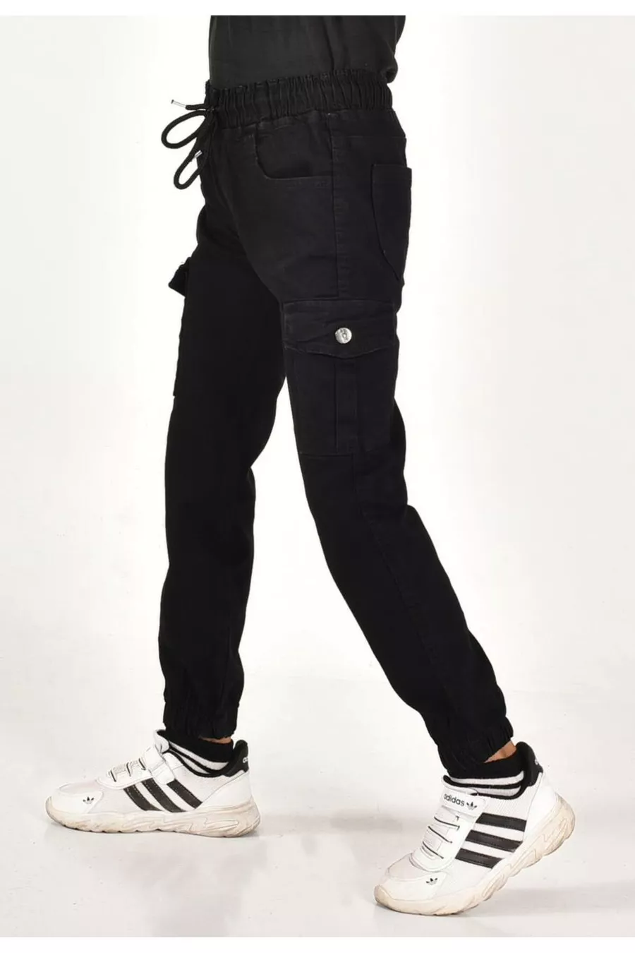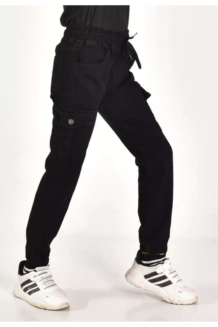 Material: Cotton Polyester Fabric Type: Denim Leg Type: Elastic Hem Waist: Regular Waist Pattern: Plain Color: Black Pocket: Cargo Pocket Product Detail: Pocket Detail Collection: Denim Thickness: Medium Lining: Unlined Length: Long Silhouette: Cargo Occasion: Casual Fit: Cargo Additional Feature: Elastic Waist Persona: Fashion Forward Print/Embroidery Technique: No Print Belt/Strap Details: Drawstring Sustainability Detail: Yes Material Composition: 72% Cotton, 23% Polyester, 5% Lycra Washing Instructions: T09 Box Condition: No Box