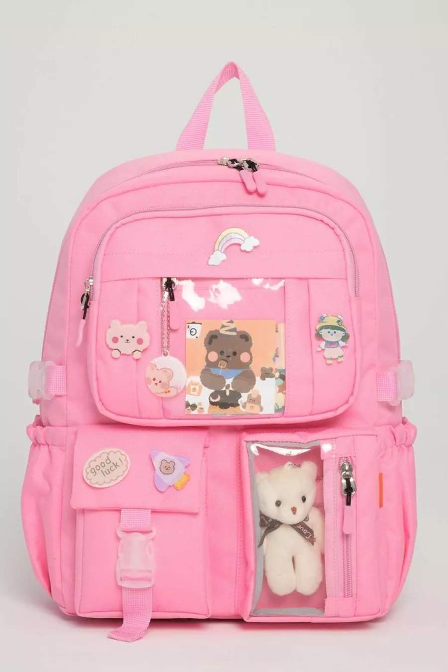 Material: Textile Type: Backpack Color: Pink Washing Instructions: Type 4 Pattern: Mix Leather Quality: No Pieces Available Fabric Type: Woven Collection: Young Sustainability Detail: Yes Capacity: 0-15 L Occasion: Daily