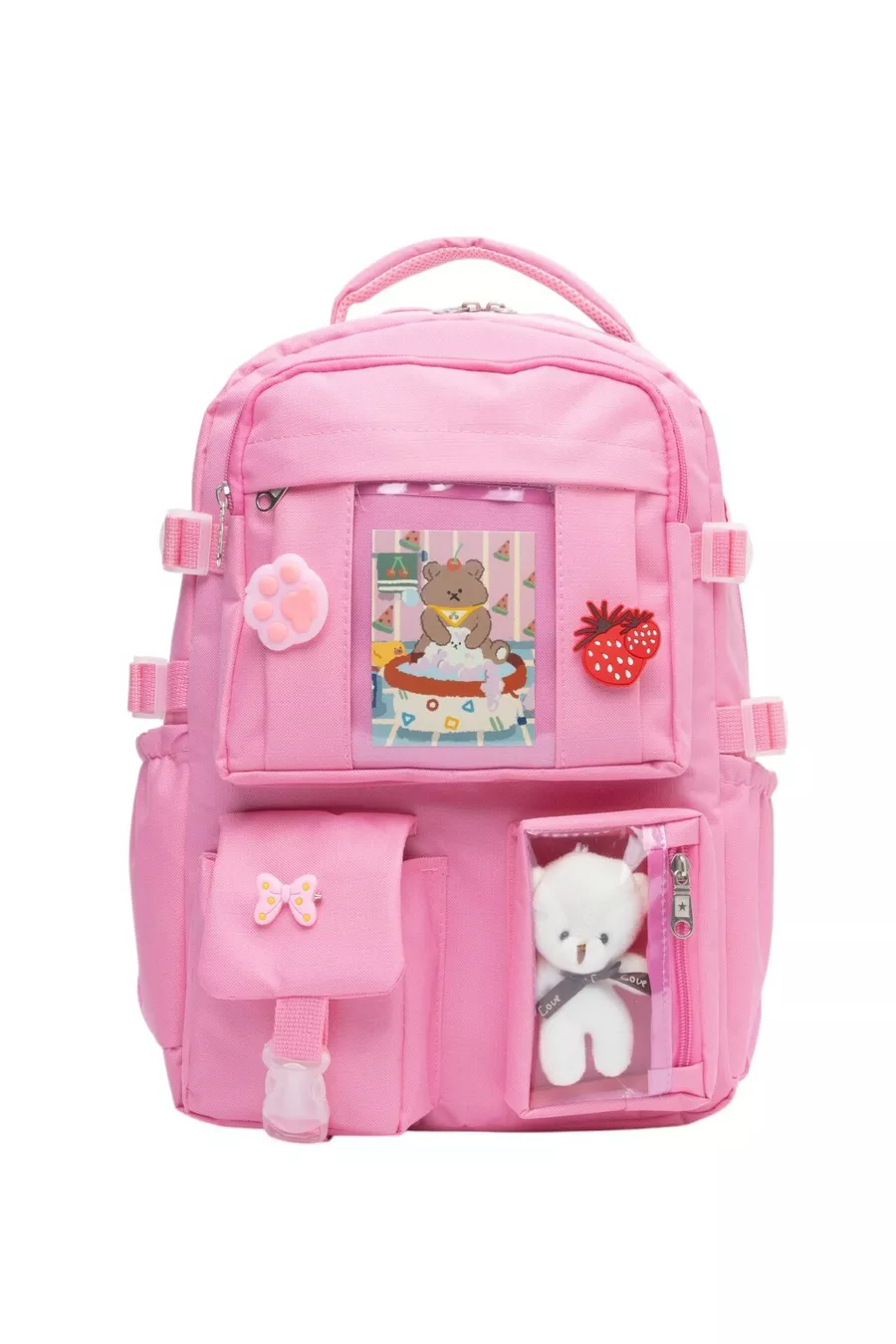 Material: Textile Type: Backpack Color: Pink Material Composition: Waterproof Washing Instructions: T4 Pattern: Solid Leather Quality: Not Available Fabric Type: Woven Collection: Design Sustainability Detail: No Capacity: 15 L Environment: Daily Origin: TR Size: One Size