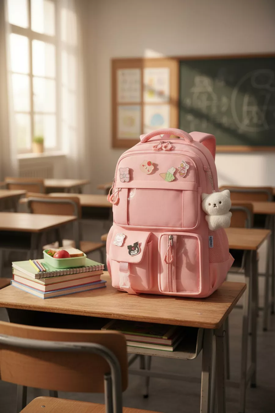 Kawaii Pro Imported New Season Ergonomic Korean Style School Backpack with Accessories and Bear in Purple