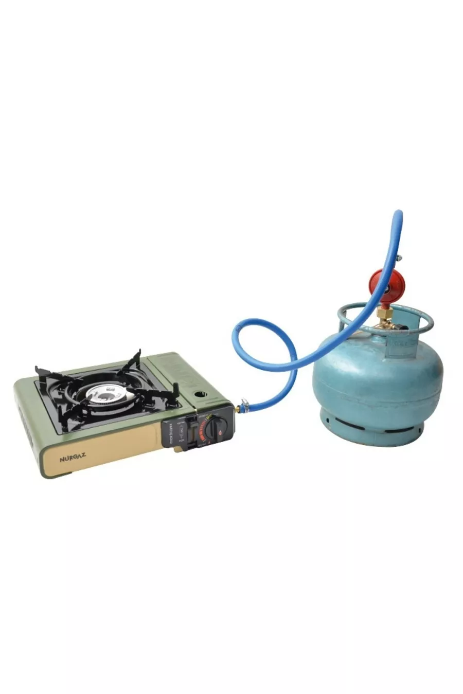 Khaki Portable Single Burner Stove + Hose Regulator Set