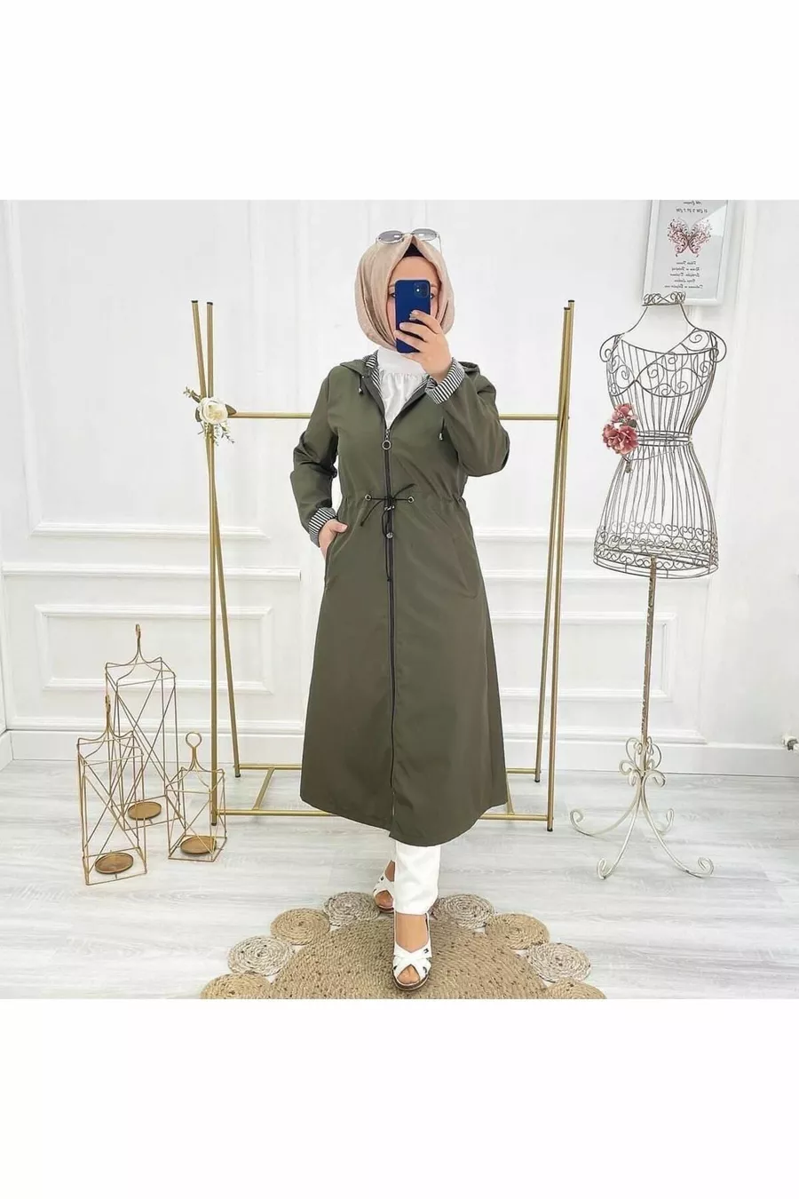 Fit: Regular Material: Polyester Fabric Type: Woven Color: Khaki Collar Type: Hooded Product Detail: Zipper Pattern: Striped Product Type: Plain Pocket: Double Pocket Sleeve Type: Standard Sleeve Sleeve Length: Long Collection: Basic Thickness: Thin Lining: Lined Additional Feature: Waterproof Persona: Cool & Comfort Closure Type: Zippered Length: Long Silhouette: Basic Sustainability Detail: No Occasion: Casual Belt/Strap: Beltless Washing Instructions: T2 Season: All Seasons Origin: TR Weave Type: Plain Weave
