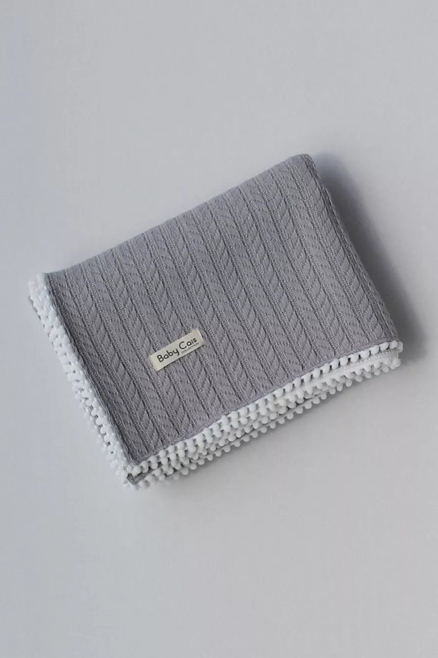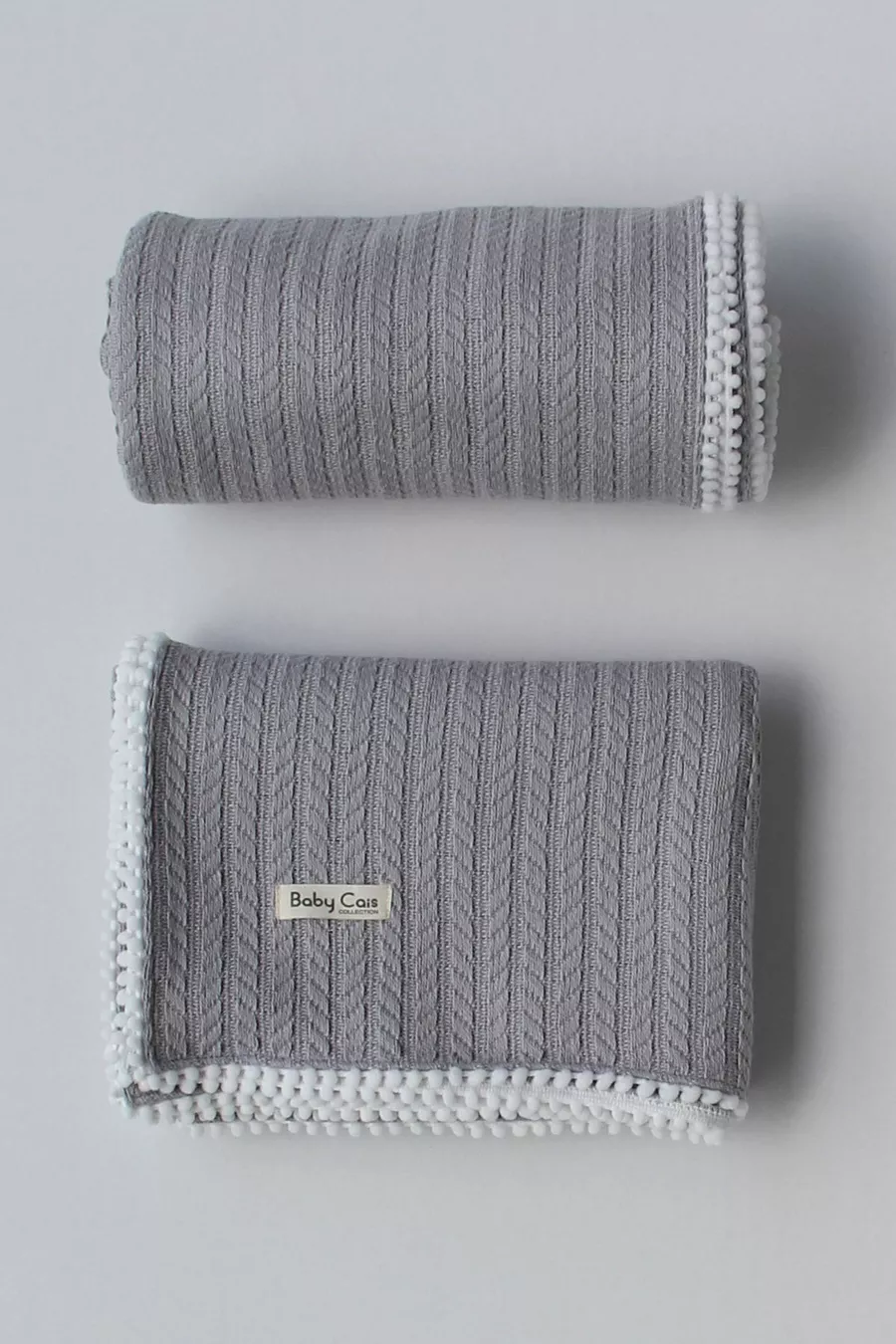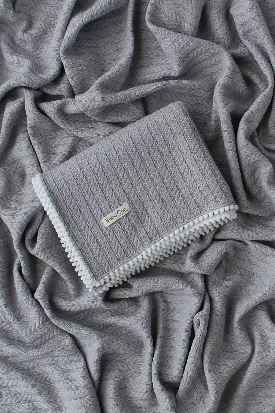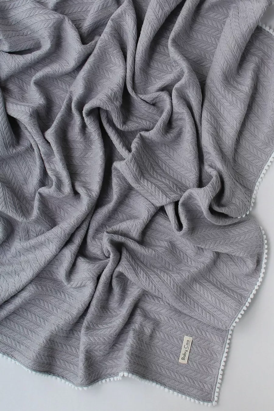 Knitted Pattern Baby Blanket Organic Cotton Baby Quilt Soft Gray cm