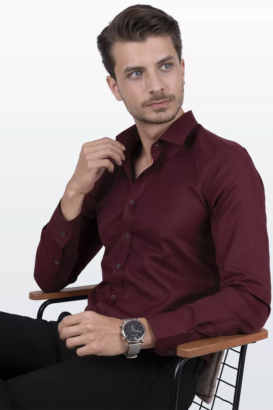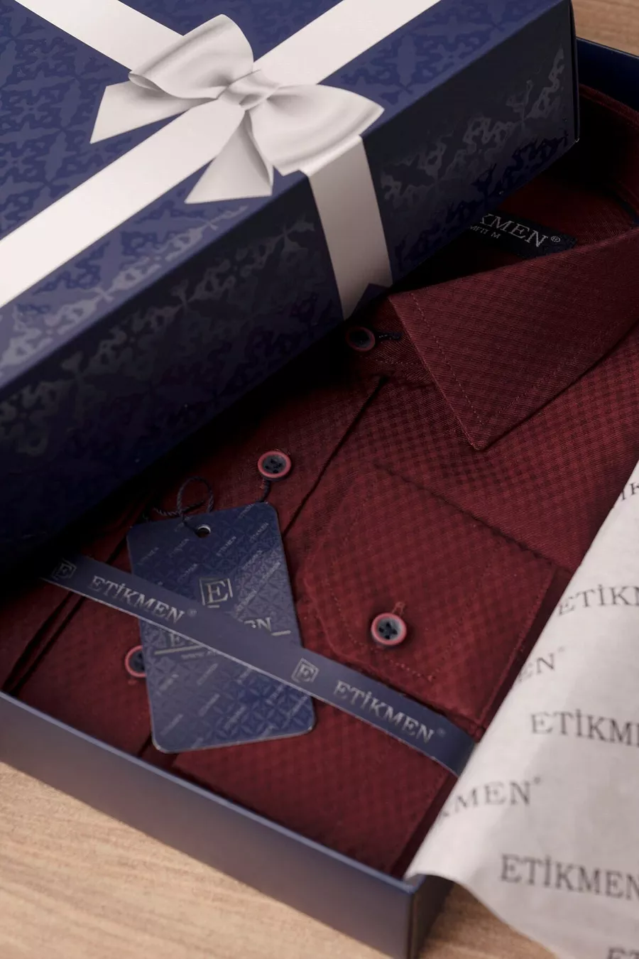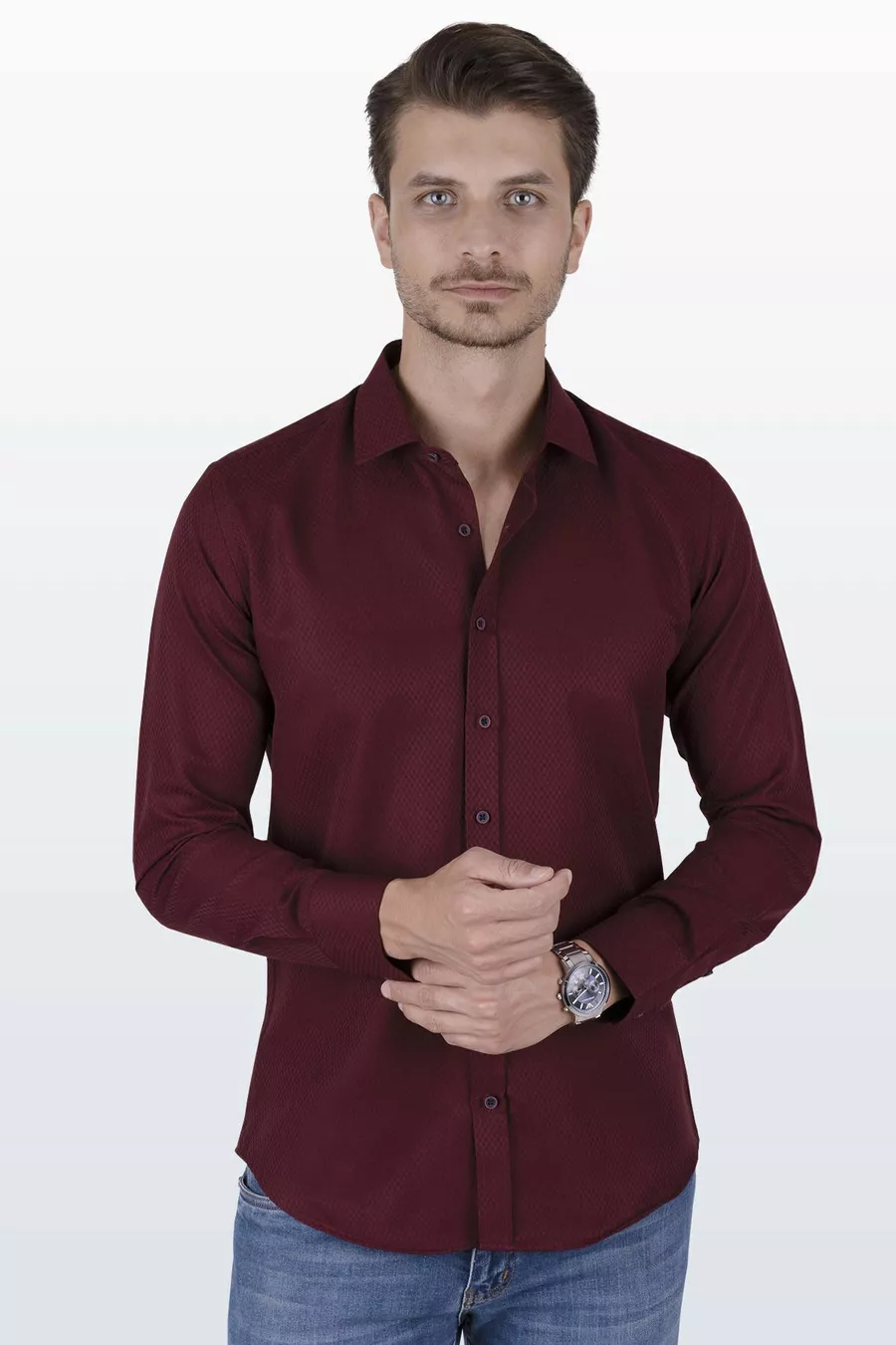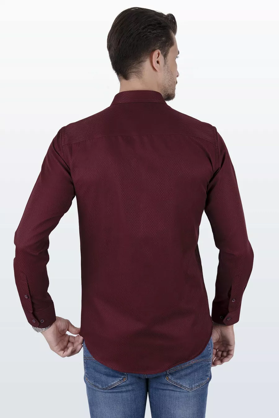Dark Burgundy Diamond Pattern Slim Fit Men's Shirt with Gift Box