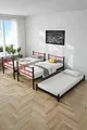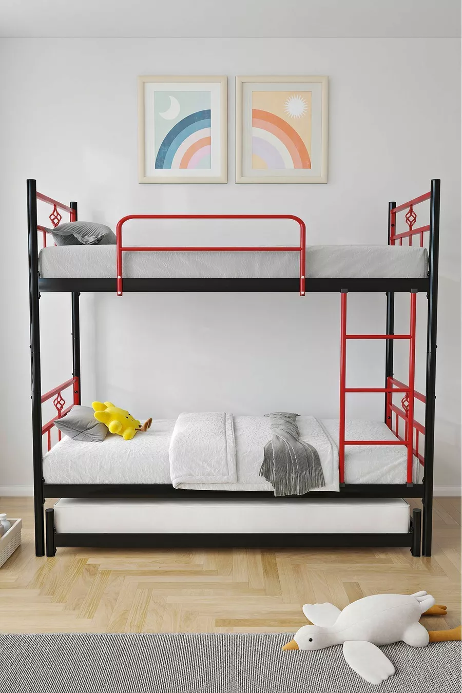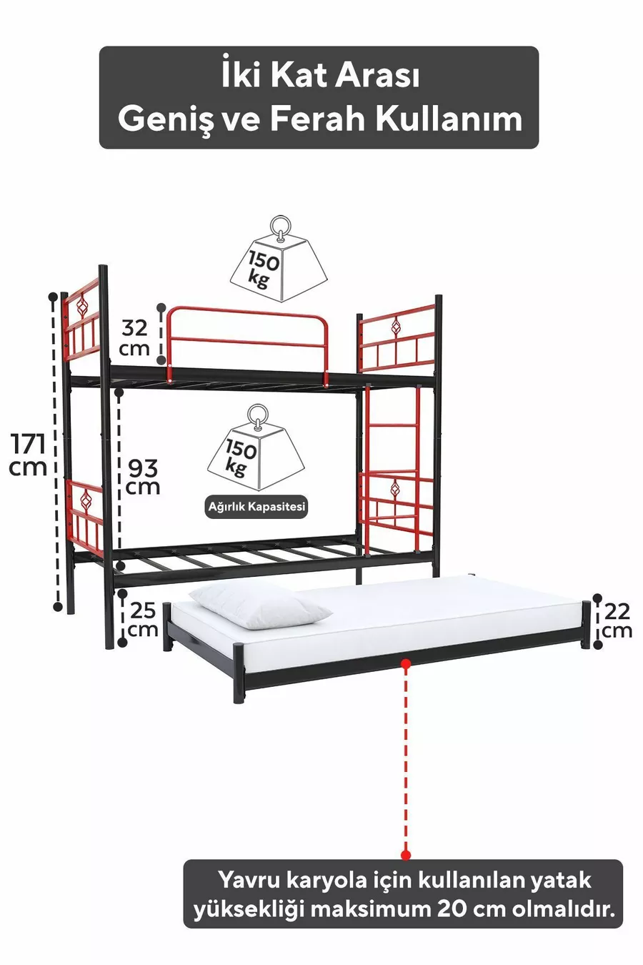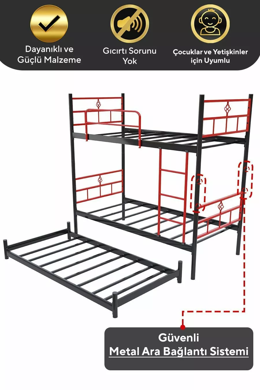 Color: Red Material: Metal Size: Double Dimensions: 90 x 200 Warranty Period: 2 Years Style: Classic Theme / Style: Classic Bed with Trundle: Yes Feature: Long