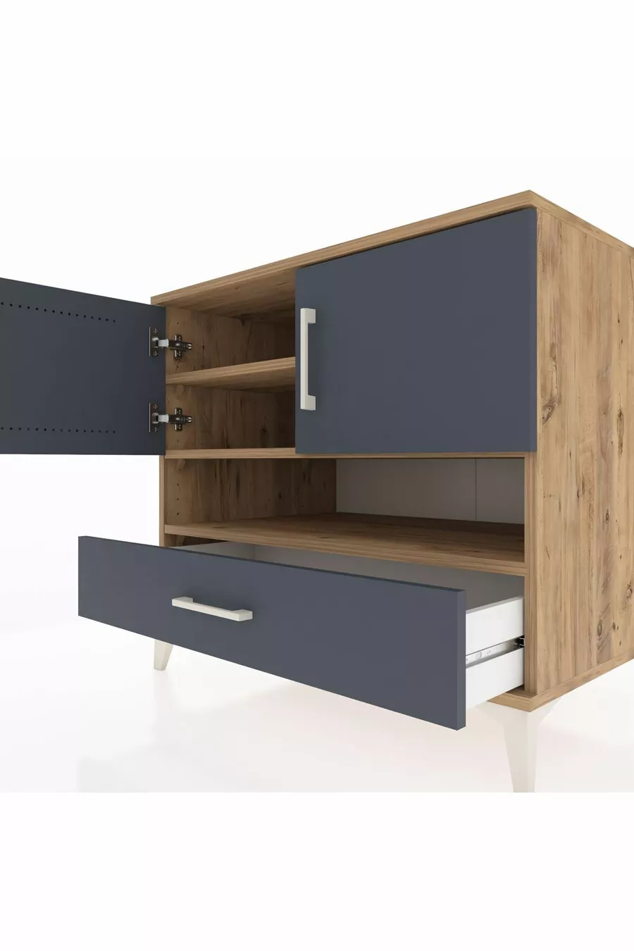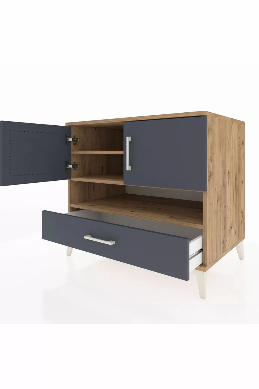 Kronos Dresser with 3 Shelves, 1 Drawer, 2 Doors, Pine-Anthracite
