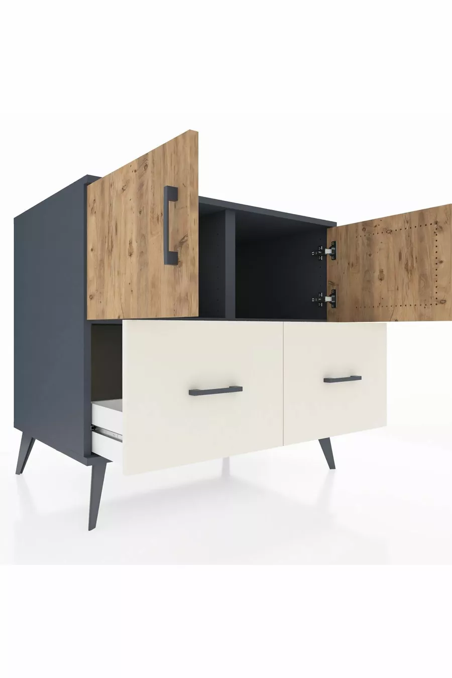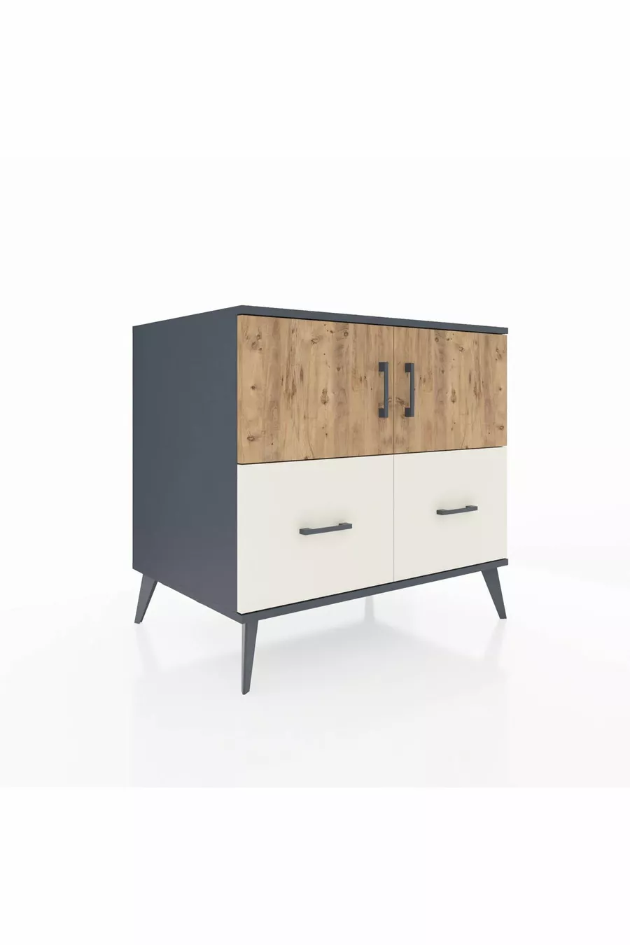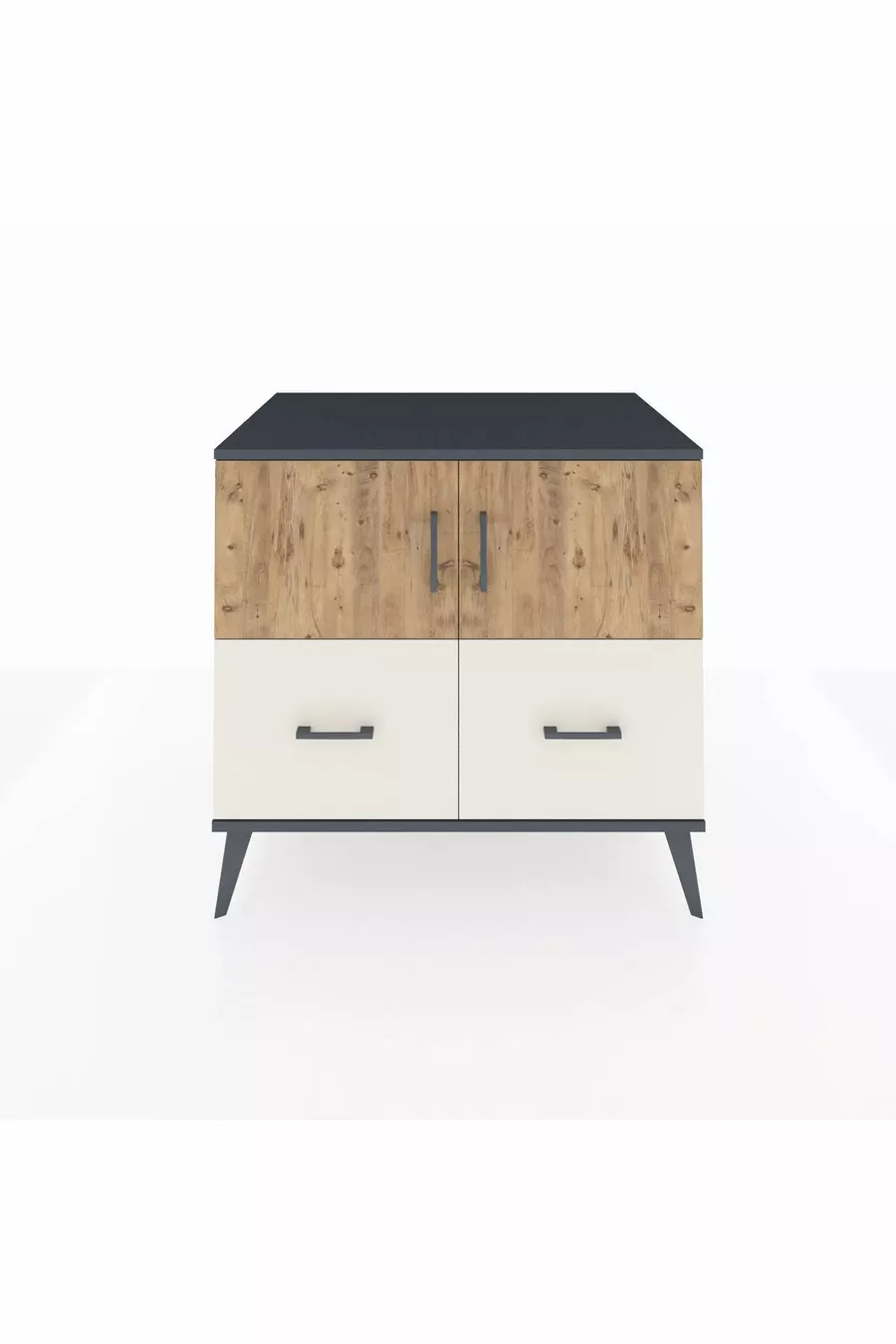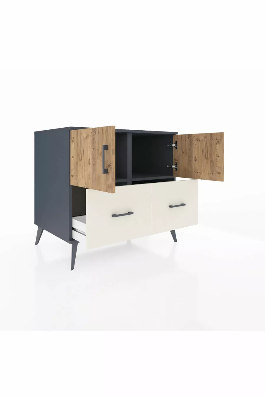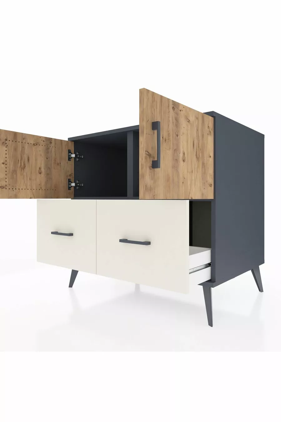 Kronos Dresser with 2 Shelves, 2 Drawers, 2 Doors Anthracite-Pine/Ayat Stone