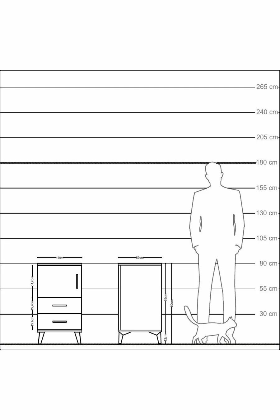 Material: Particleboard Color: Multicolored Number of Drawers: 2 Height: 80 cm Width: 44 cm Depth: 59 cm Style: Modern Theme / Style: Modern Origin: TR