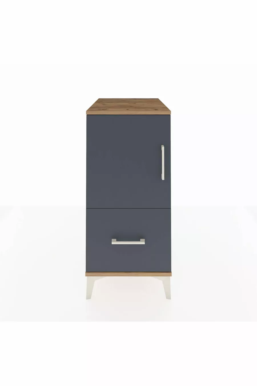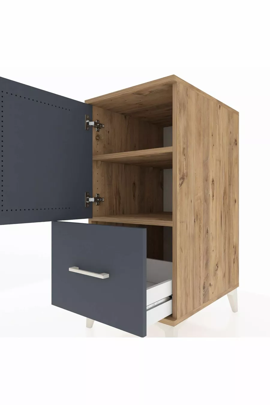 Kronos Nightstand with 2 Shelves, Single Drawer, Single Door, Pine-Anthracite