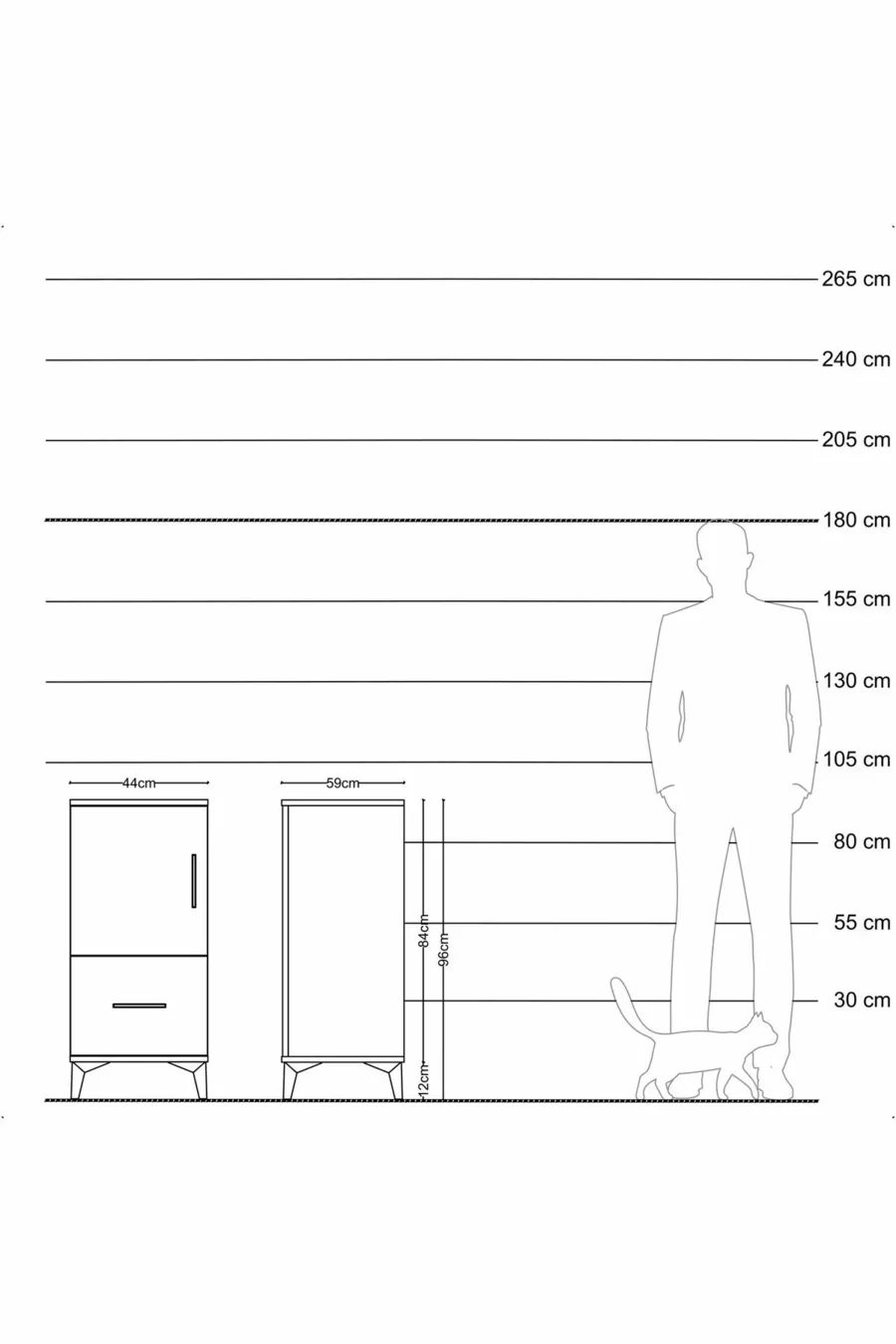 Material: Particleboard Color: Multicolored Number of Drawers: 1 Height: 96 cm Width: 44 cm Depth: 59 cm Style: Modern Theme / Style: Modern Origin: TR