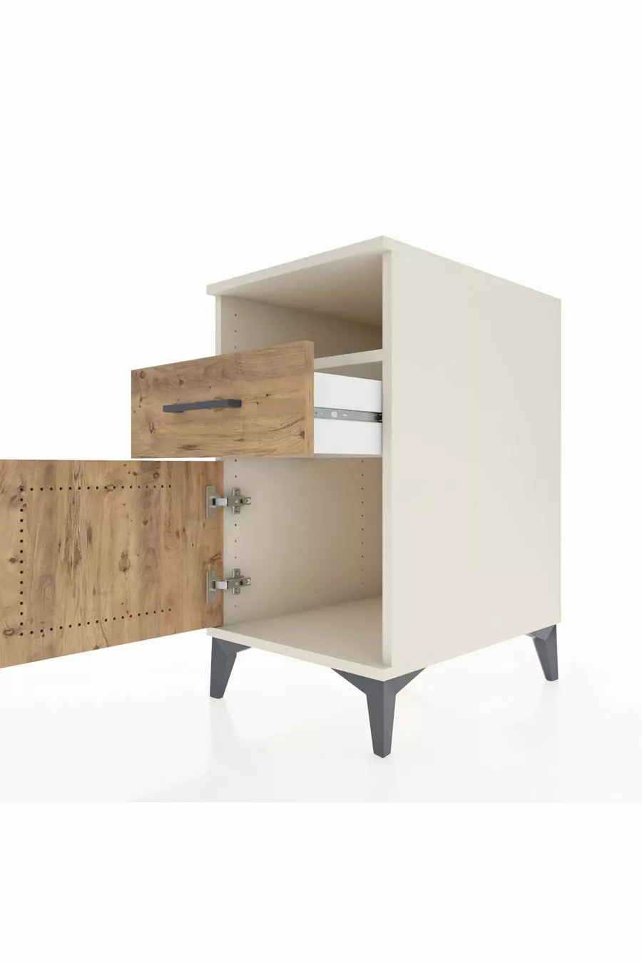 Kronos Nightstand with One Shelf, One Drawer, and One Door Moonstone-Pine