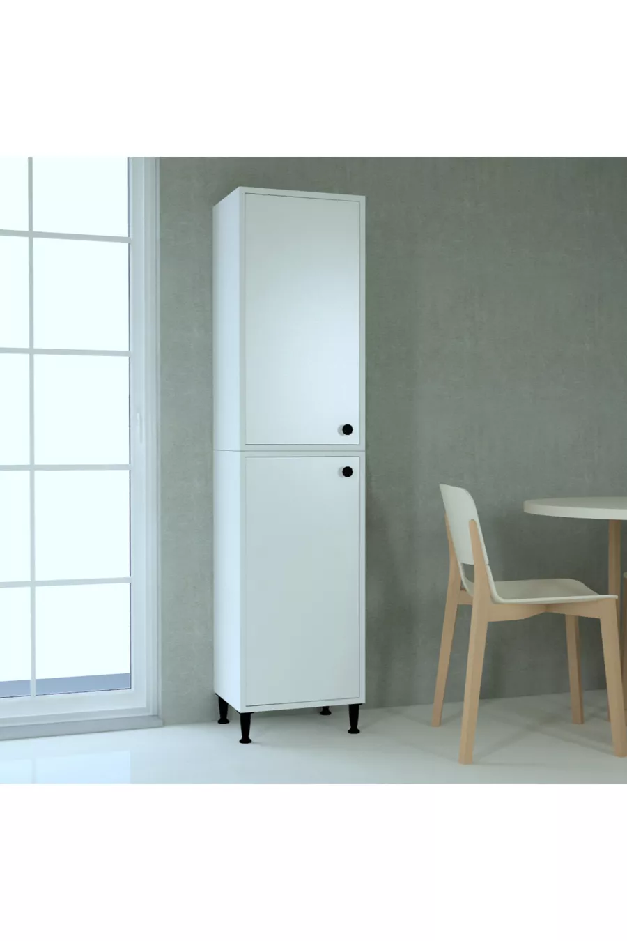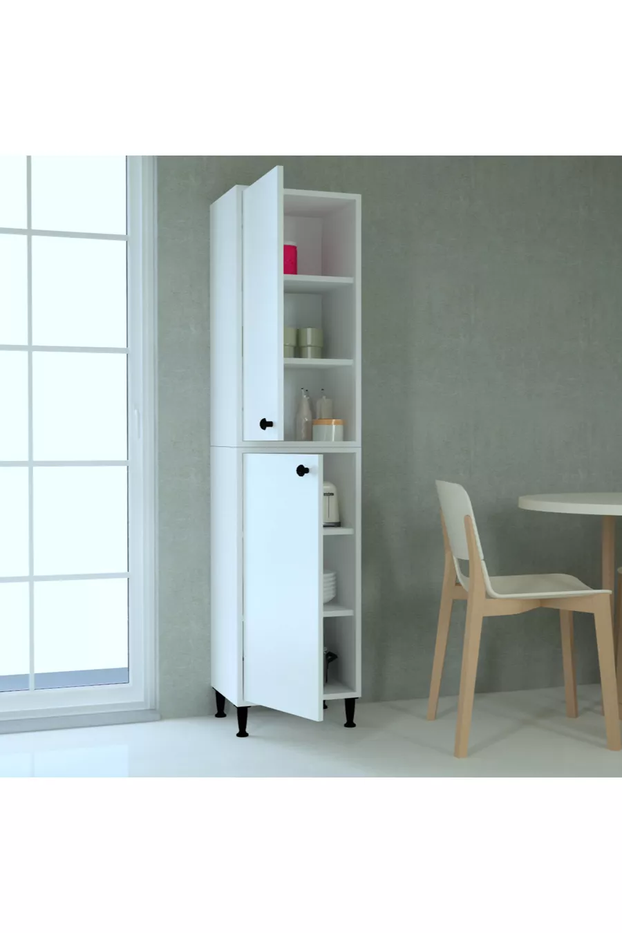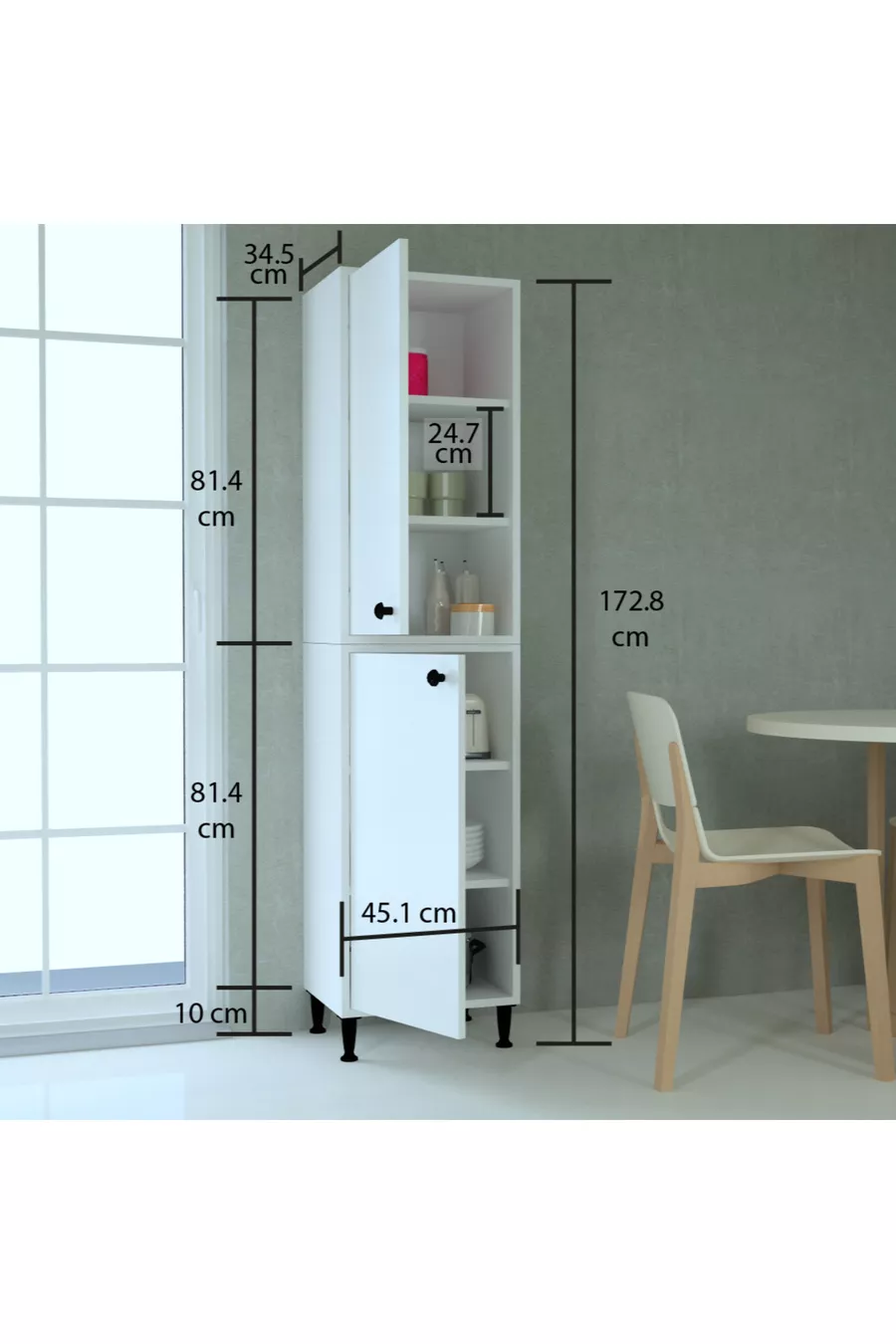 Function: With lid Color: White Width: 45 cm Depth: 35 cm Number of lids: 4 Body material: Particleboard Mirror function: Without mirror Style: Modern Theme / Style: Modern Origin: TR Feature: With legs