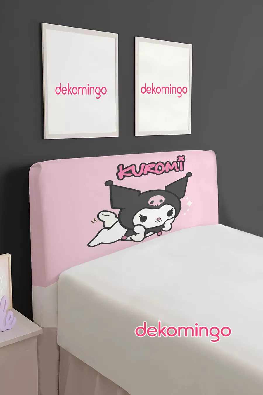 Kuromi Pink Patterned Bed Base Headboard Cover (Single)