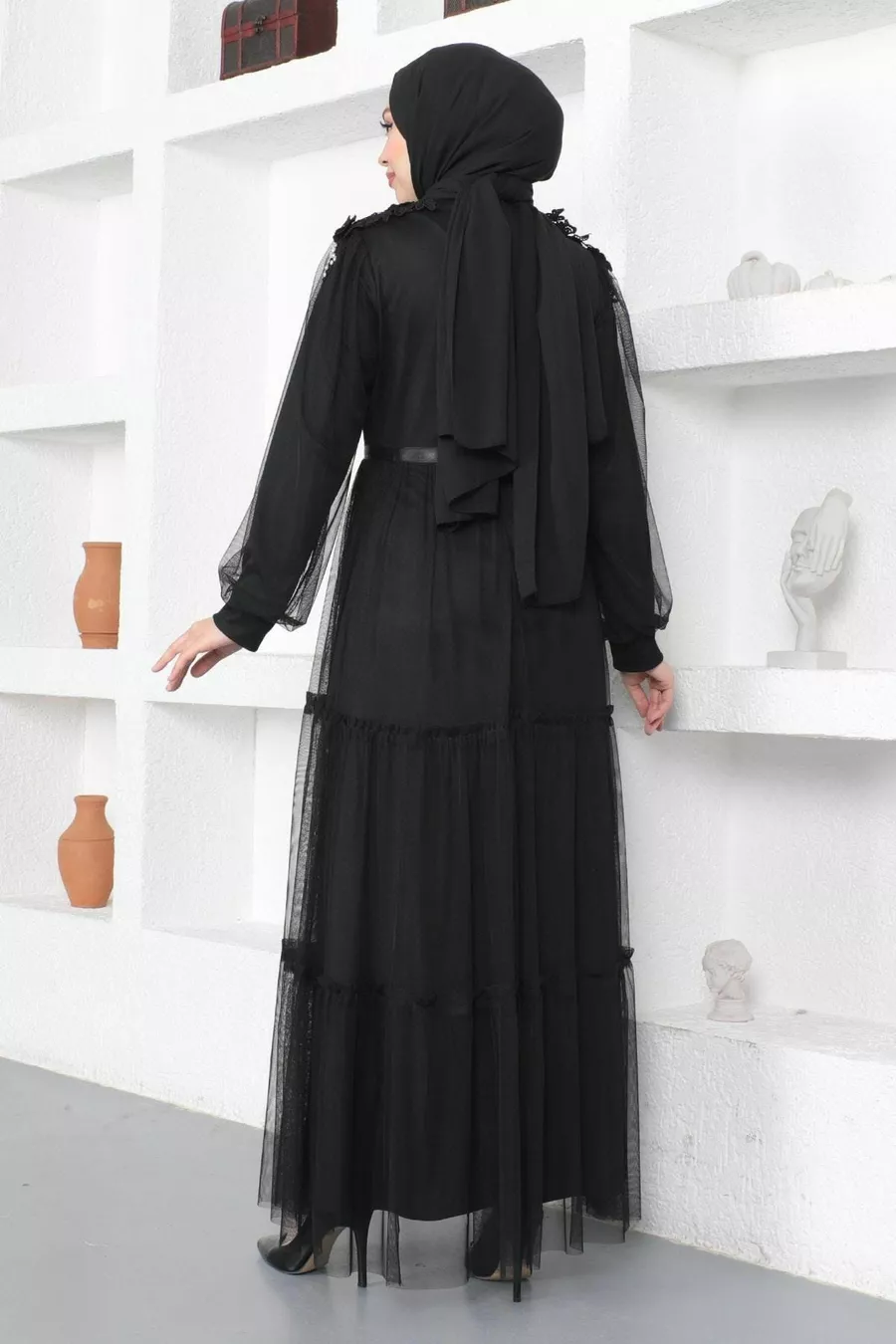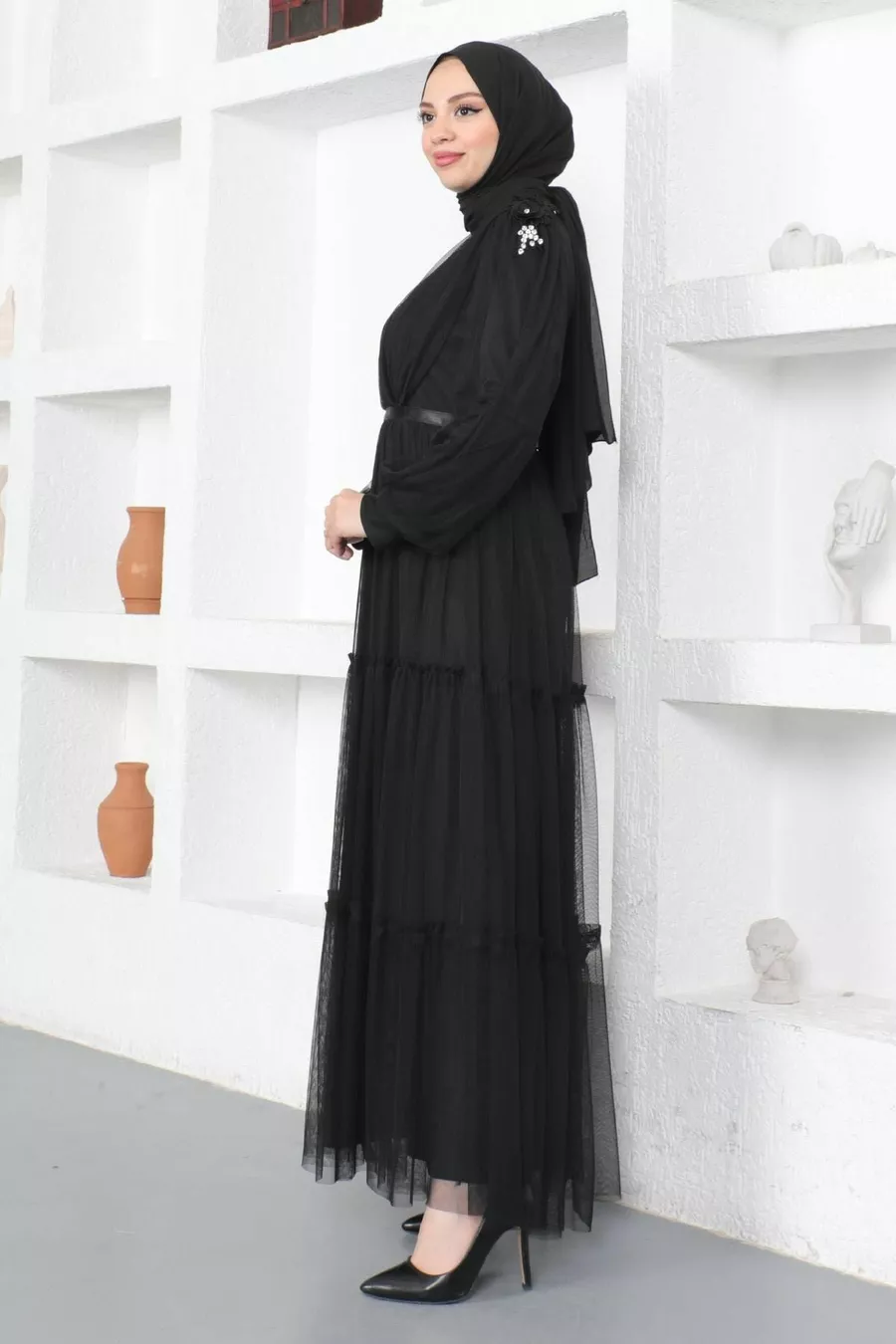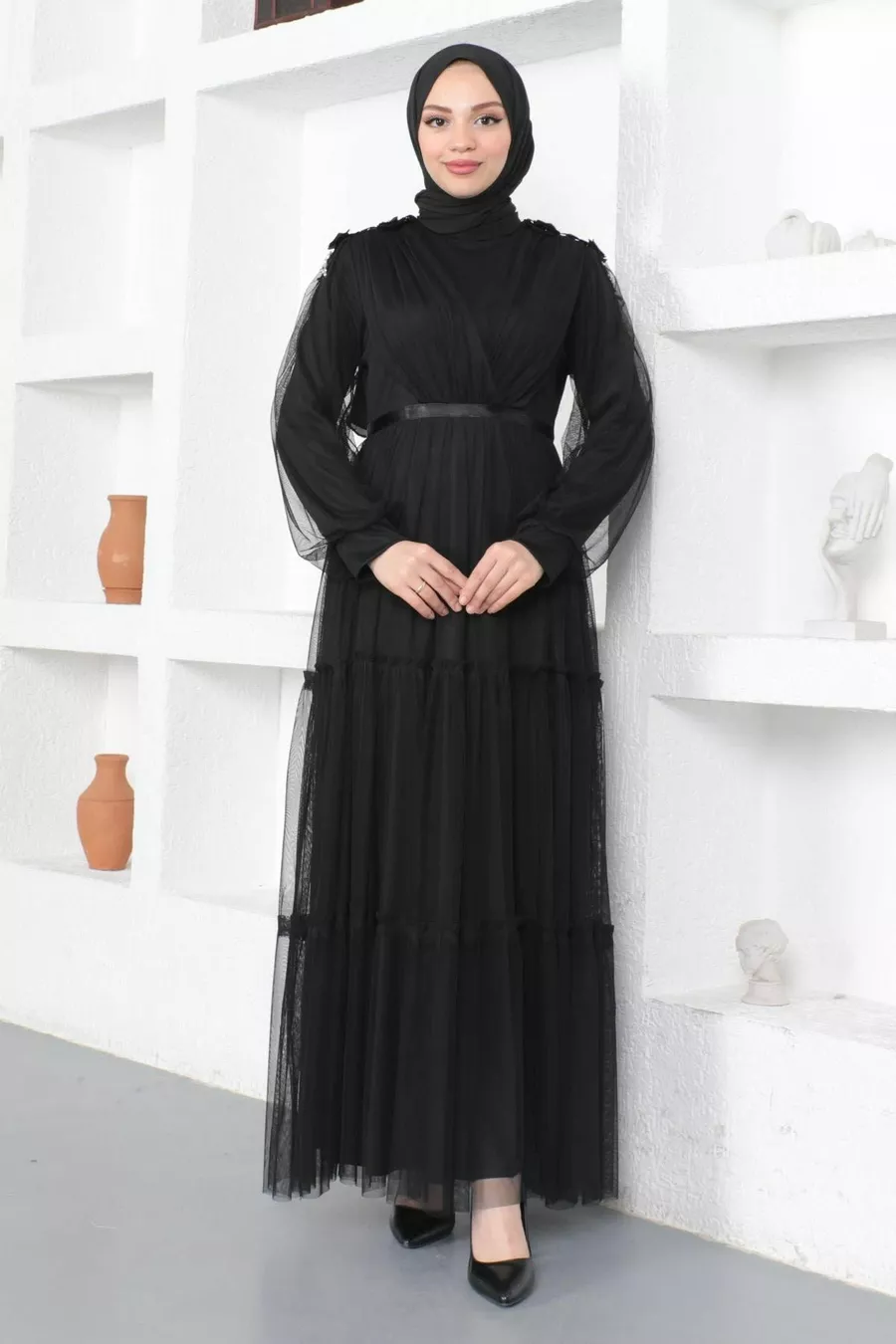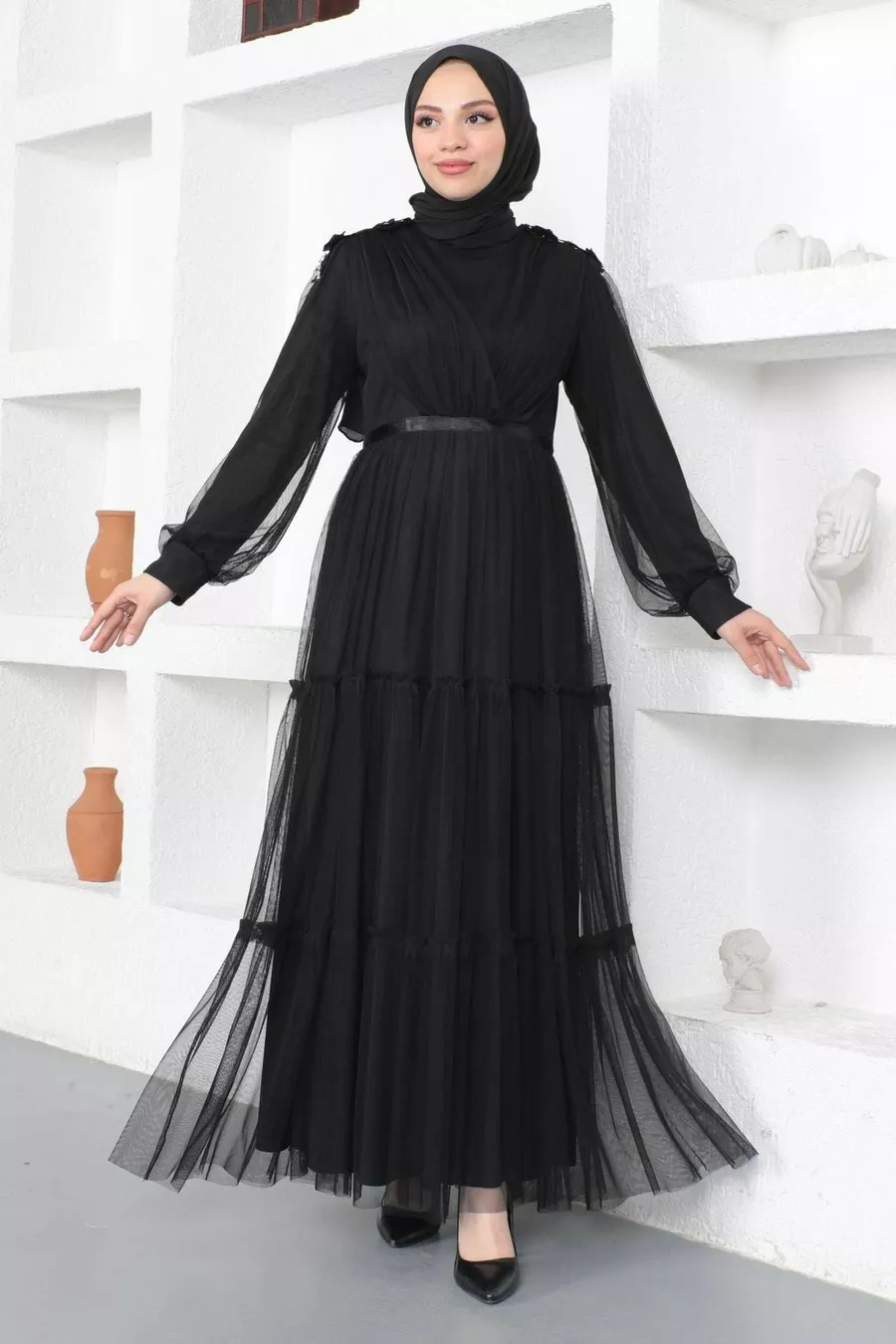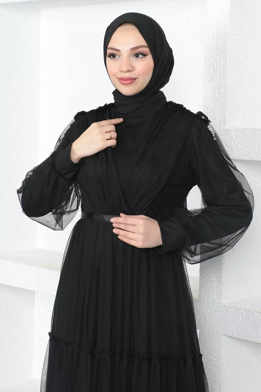 This product will be shipped by \xa0 Quenmadam\xa0. More than 5 stocks are offered to be sold at the campaign price. The seller determines the sales price of the product you have examined. A product can be sold by more than one seller. The sellers of the products offered for sale by more than one seller are ranked according to the price they set for the product, the seller ratings, the delivery status, the promotions in the products, whether the shipping is free or not, and whether the products can be delivered with fast delivery, the stock and categories of the products. A maximum of \xa010 pieces of this product can be ordered.\xa010 units can be ordered by Queenmadam.\xa0This limit is not valid for corporate orders, and different limits can be set for corporate orders. Free returns within 15 days. Click \xa0 for more information. Fabric Feature: It is made of tulle fabric. Product Feature: It is a new season hijab fashion product. It is lined. It has a zipper that can be used from the back. The shoulder is lace and the waist is stripe detailed. There may be a tonal difference in the product color due to concept shots. It is the size 38 on the mannequin. Size 38 Evening Dress Dimensions: Product Length: 140 cm - Chest: 92 cm - Waist: 74 cm - Hips: 100 cm Body measurements increase by 3 or 4 cm. (Product Size Does Not Change)