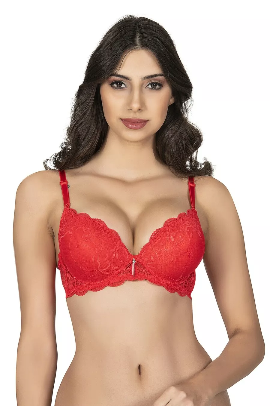 Sustainability Detail: No Material: Polyamide Blend Length: 168 Fit: Underwired Sleeve Length: Strappy Color: Red Package Contents: Single Product Detail: Lace Detailed Pattern: Floral Product Type: Plain Cup: Push Up Collection: Lingerie Neckline Type: Strappy Neckline Fabric Type: Woven Weaving Type: Lace Persona: Sexy Additional Feature: Push Up Silhouette: Wire Material Composition: 90% Polyamide, 10% Elastane Environment: Elegant/Night Top Silhouette: Wire Washing Instructions: Type 3 Country of Origin: TR Box Condition: No box Number of Pieces: 1