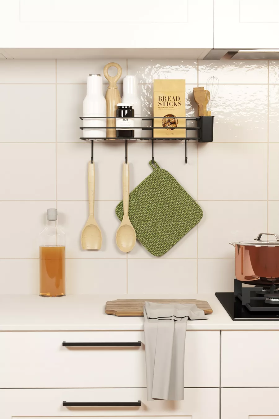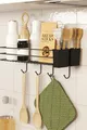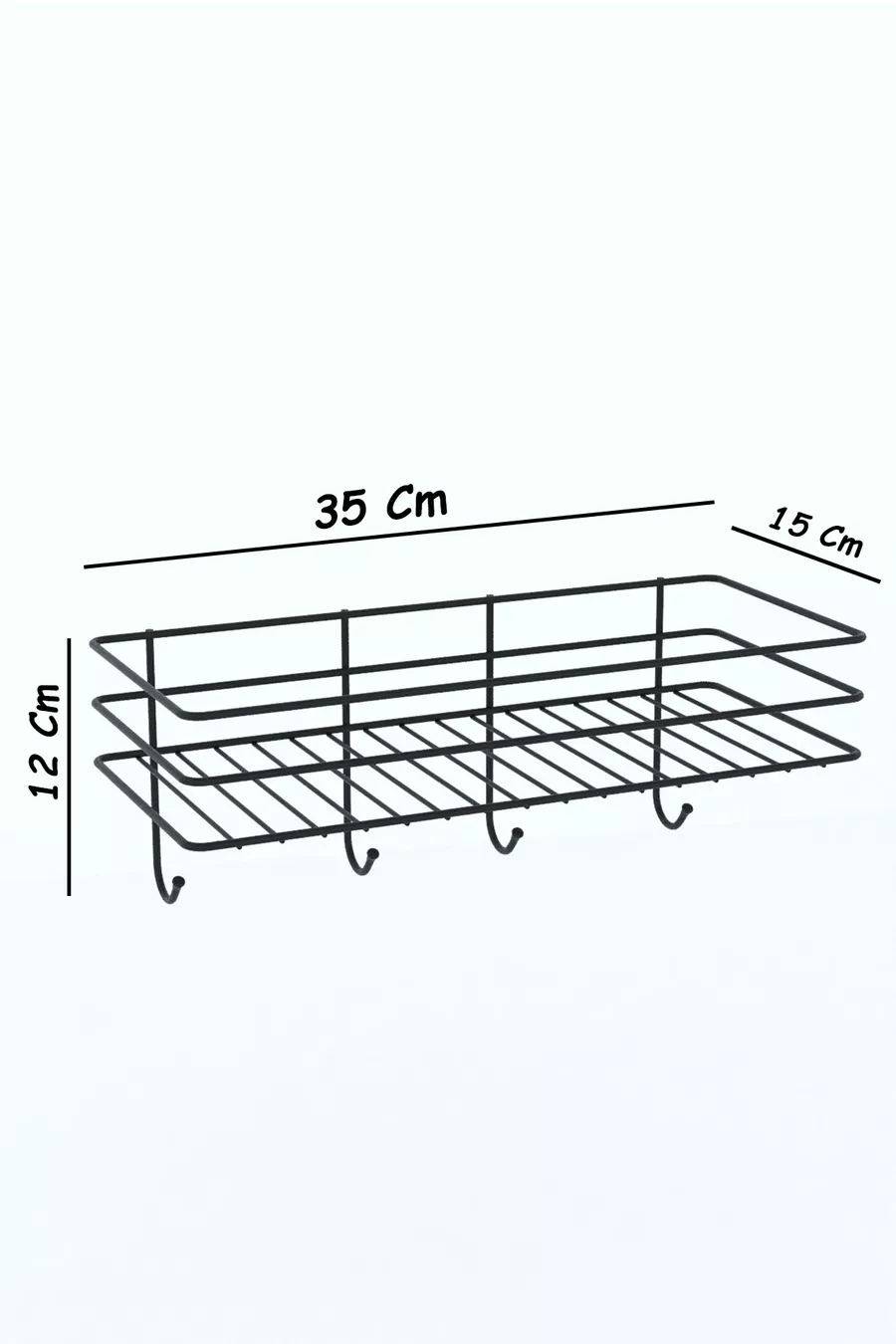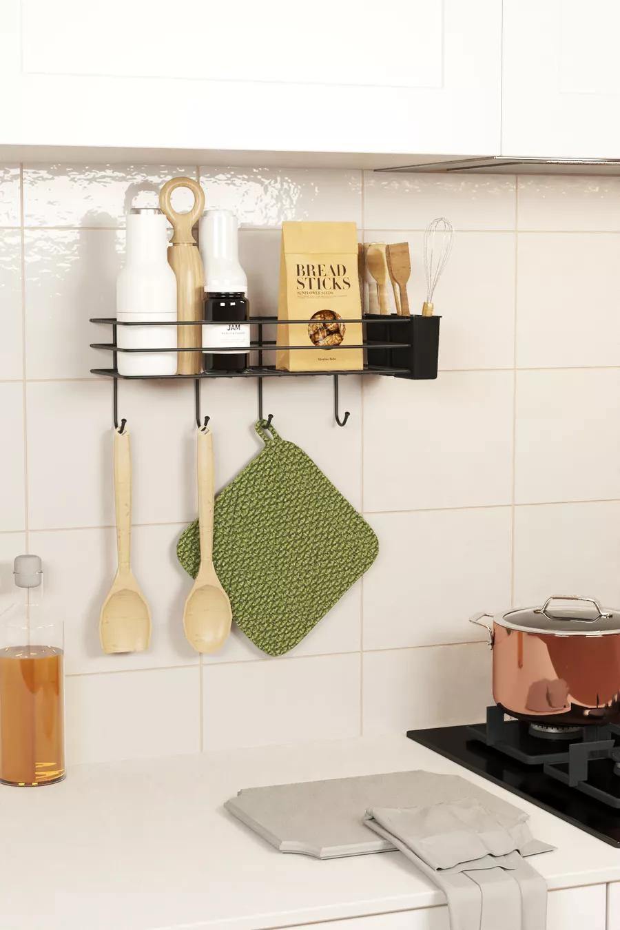 Large Sticky Wall-Mounted Kitchen Shelf Counter Organizer with Hooks
