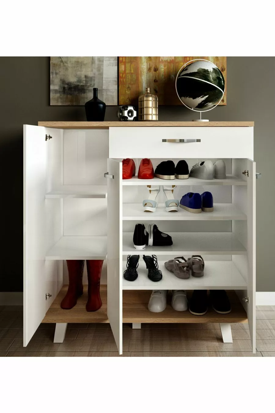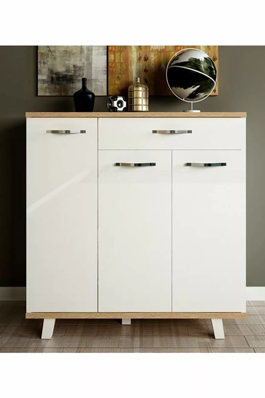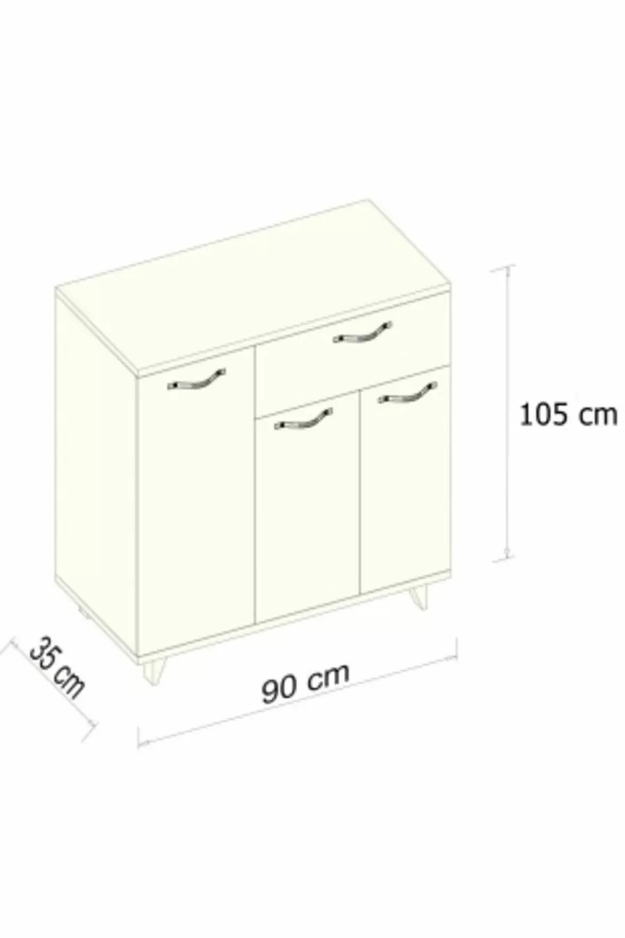 Material: Particleboard Color: White Height: 105 cm Width: 94 cm Depth: 35 cm Warranty: 2 Years Style: Modern Theme / Style: Modern Origin: TR Feature: With Legs