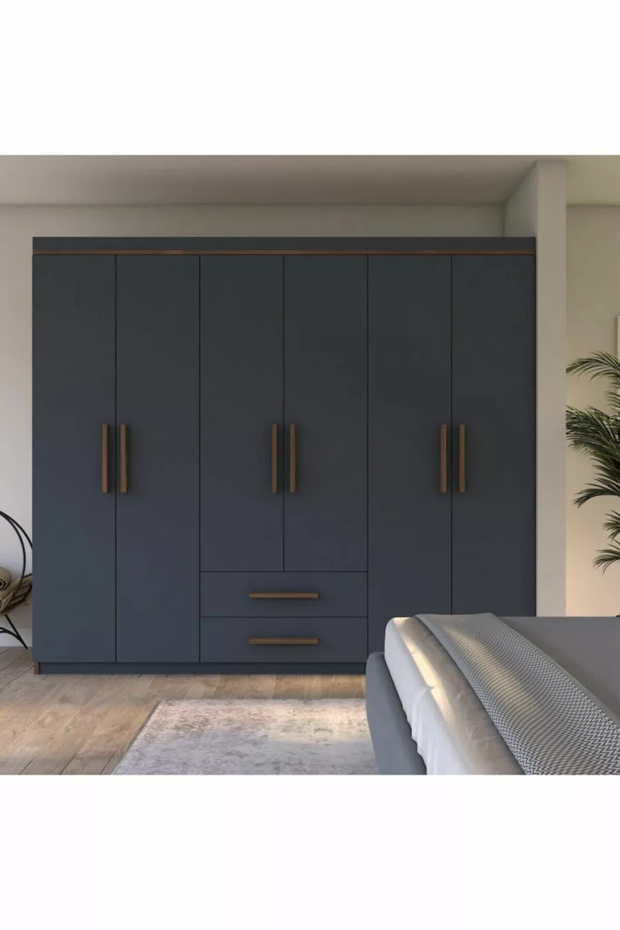 Lavinya Luxury 6-Door 2-Drawer Wardrobe Walnut-Anthracite Gray